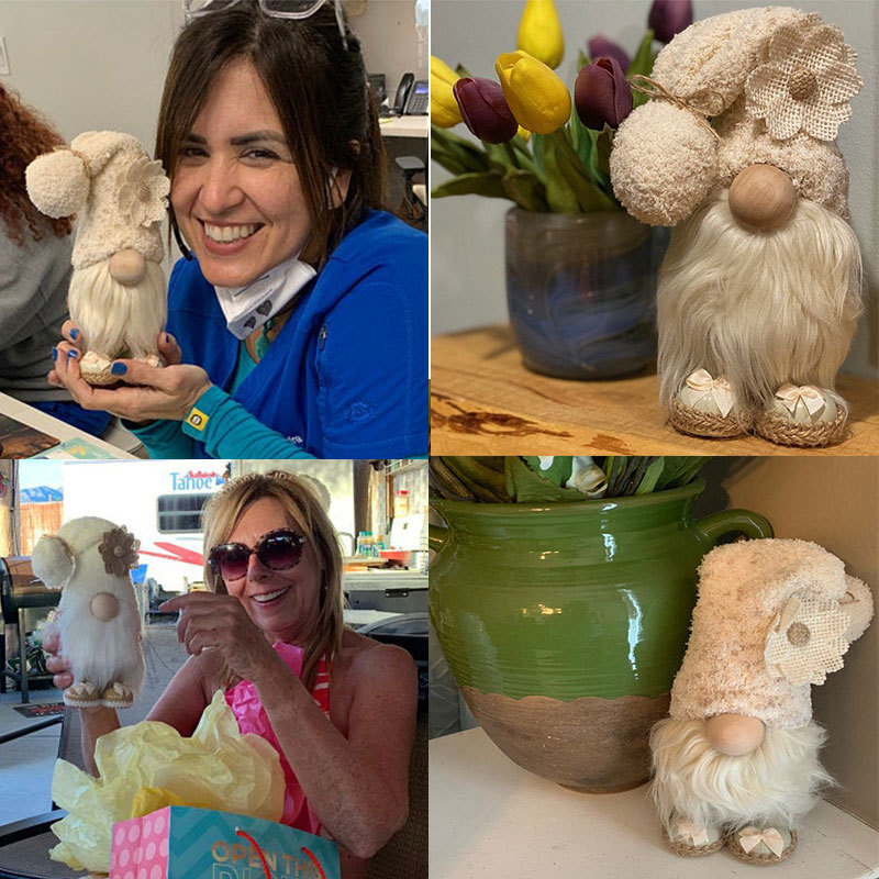A wonderful Farmhouse Gnome with a cream colored hat and boots.