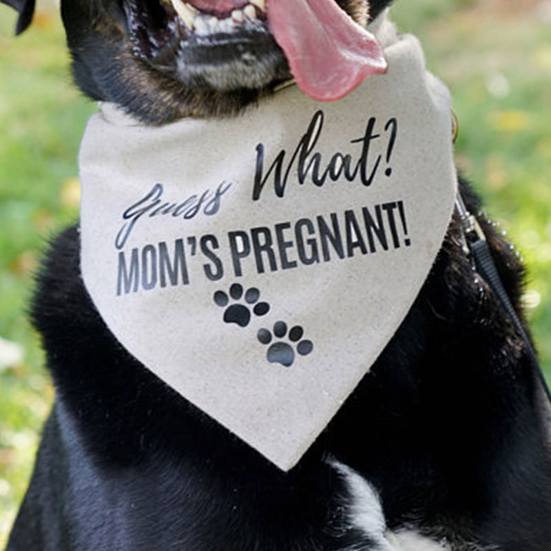Do you have big news to announce, a cute dog and want a special way to share this happy news? Let friends and family know your big news with a completely unique custom bandana for your very loved dog to wear.