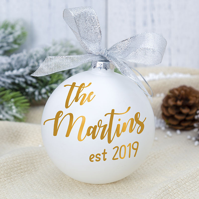 This sparkling glass ball can be customized to your personal information and will be the best decoration on the Christmas tree.