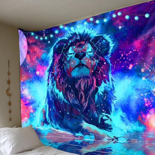 Indulge in an intergalactic space trip with the Space Lion King by your side. This tapestry includes a deep color contrast and a lush cotton build. This will add a new aesthetic to your room and is a must have.
