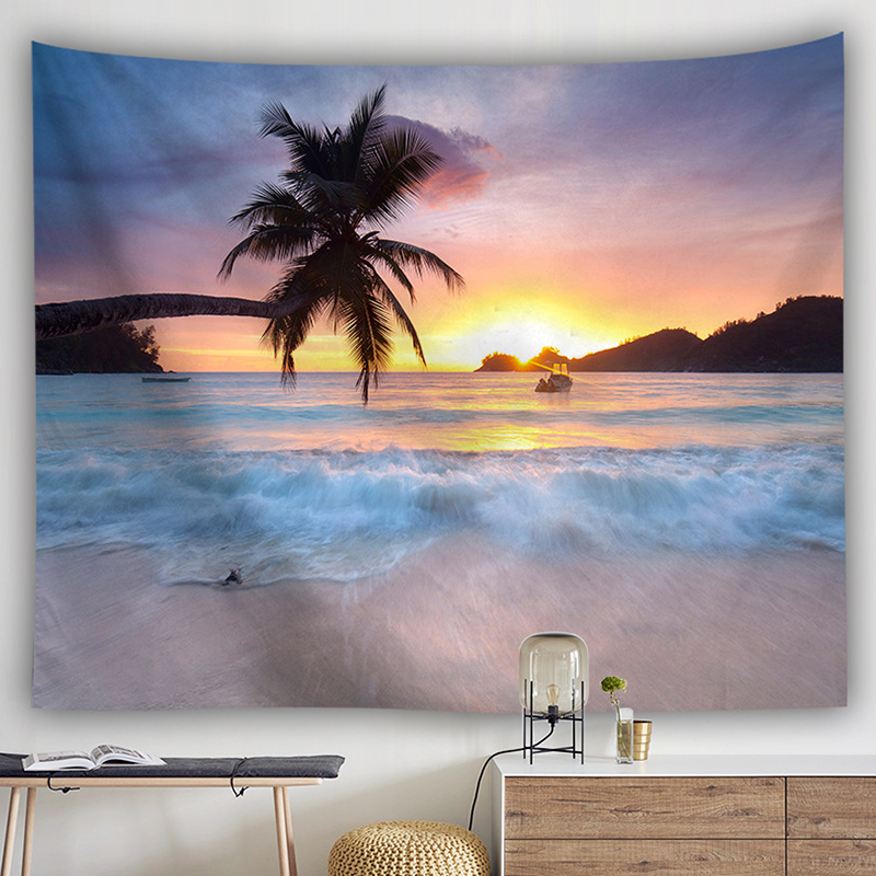 The Ocean 3D Beautiful Sunset Coast Pattern Printed Tapestry