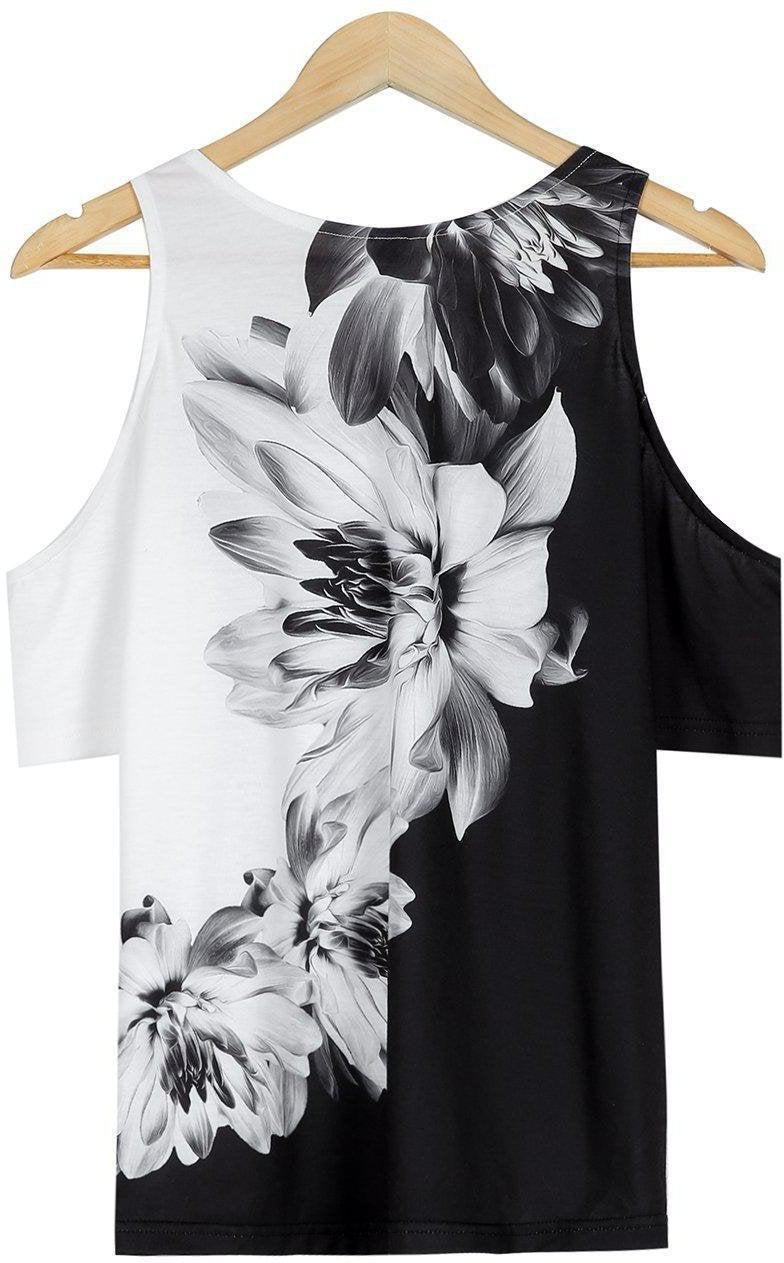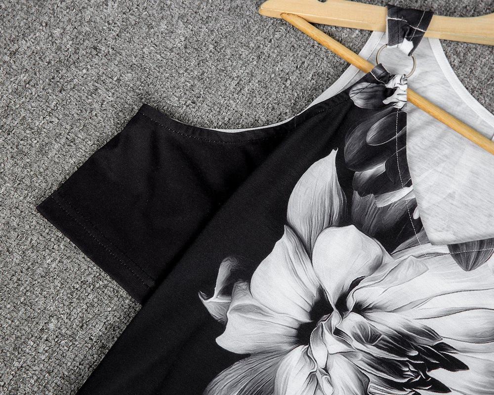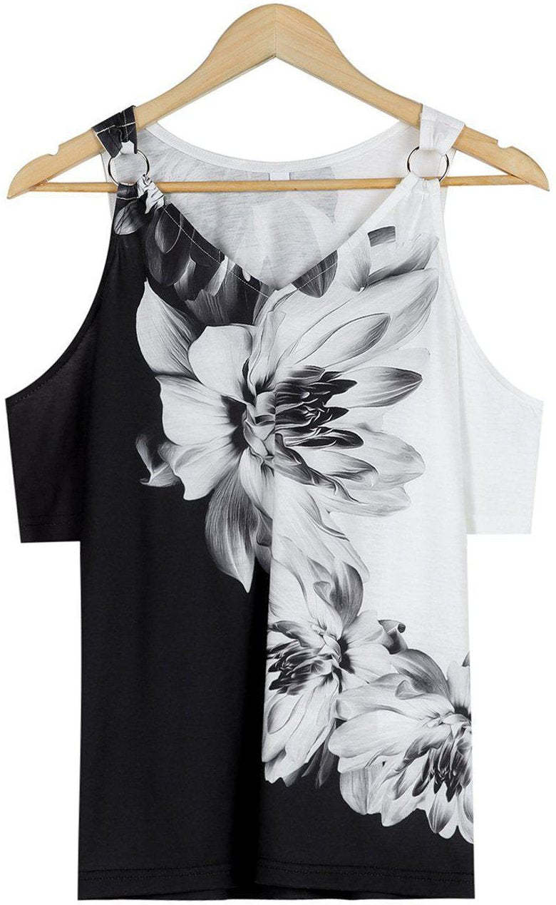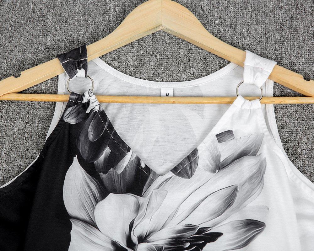 Metal Ring Black And White Flower Tunic Top