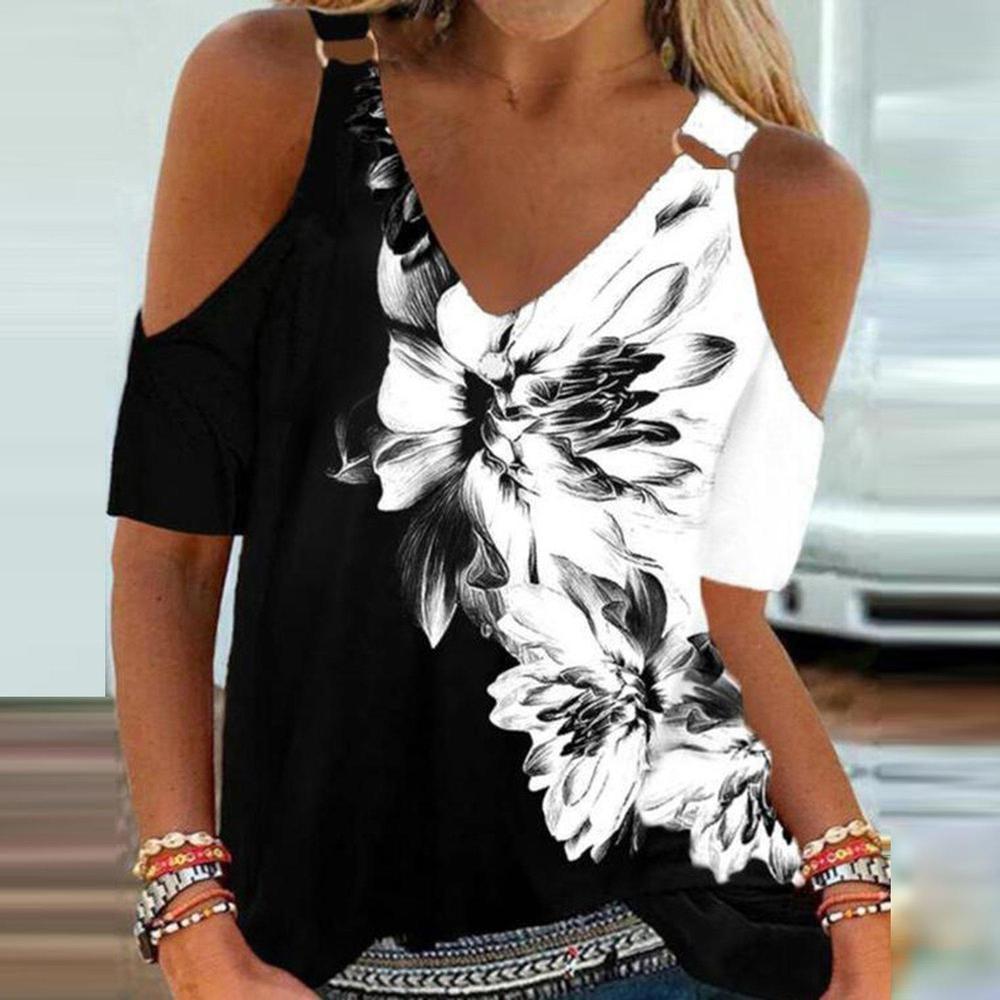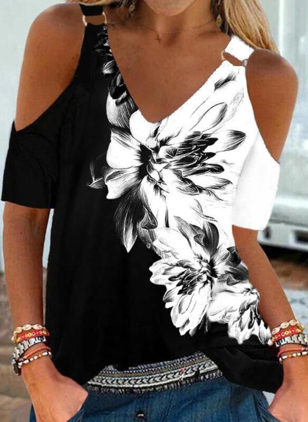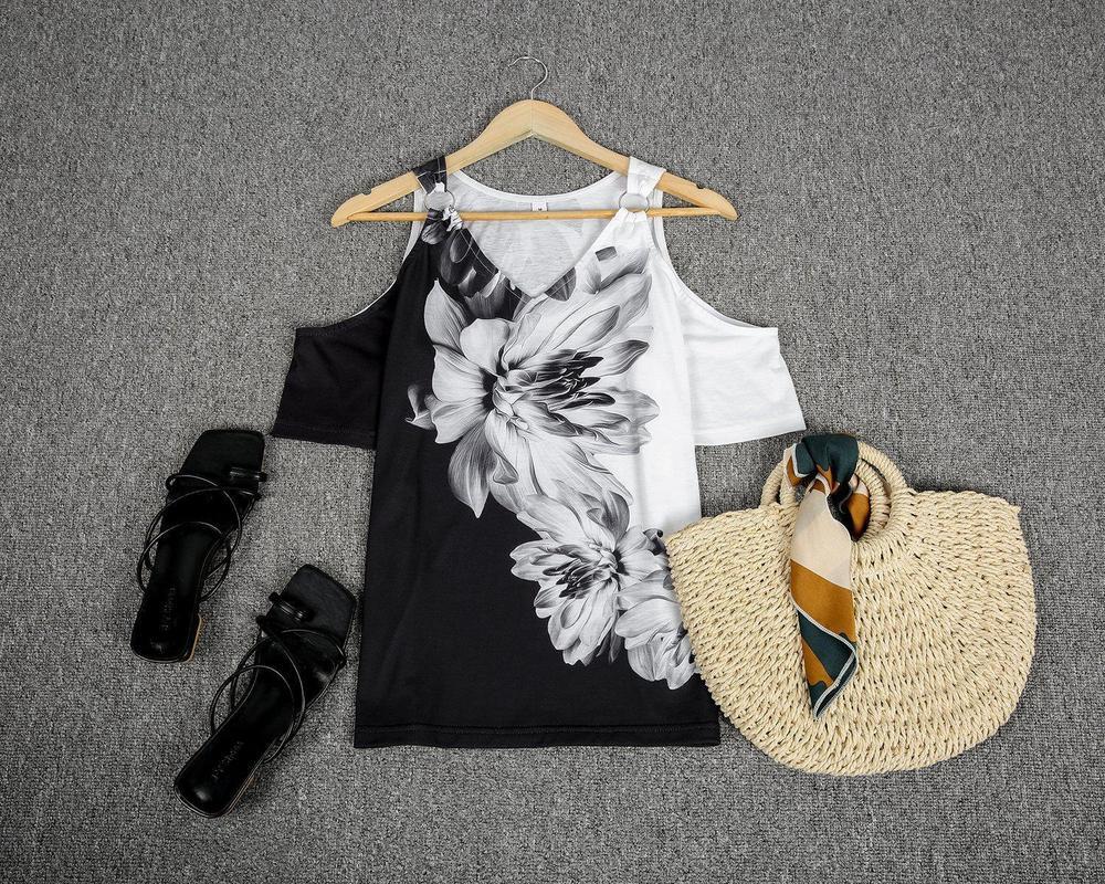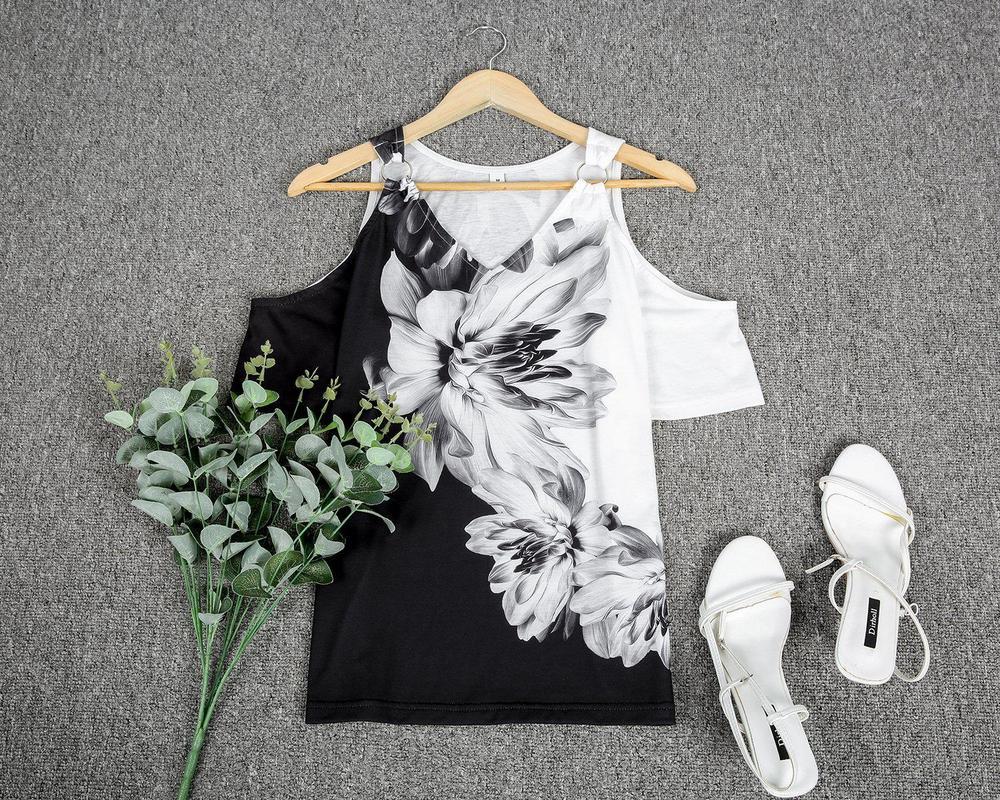 Metal Ring Black And White Flower Tunic Top