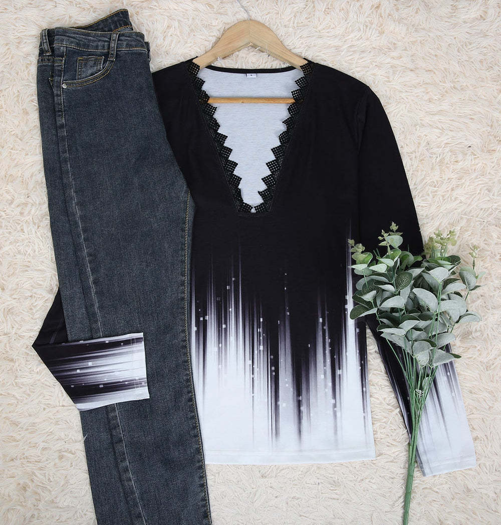 White And Black Ombre Rain Lace Top