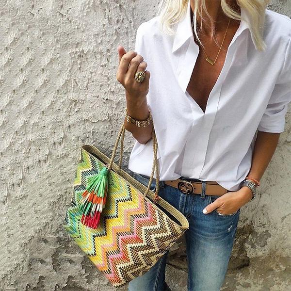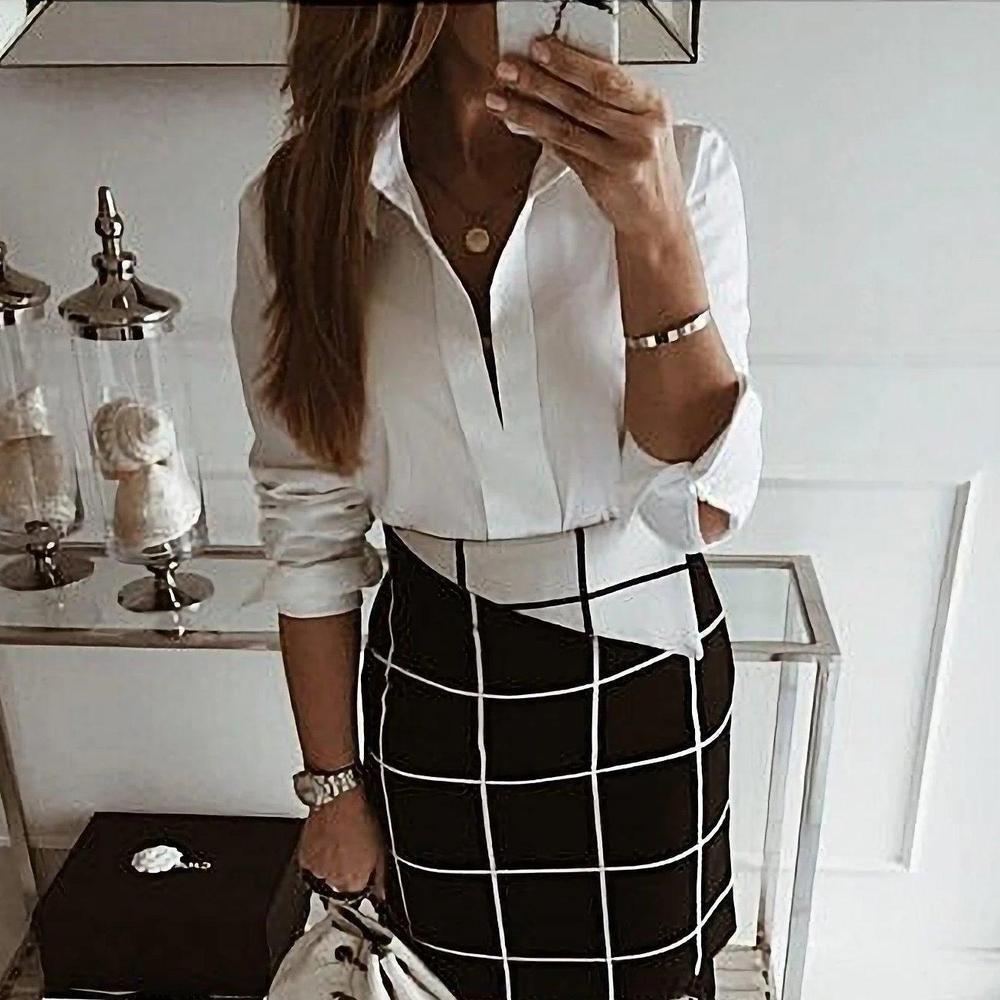 Casual Shirt Collar Plain Long Sleeve Blouse