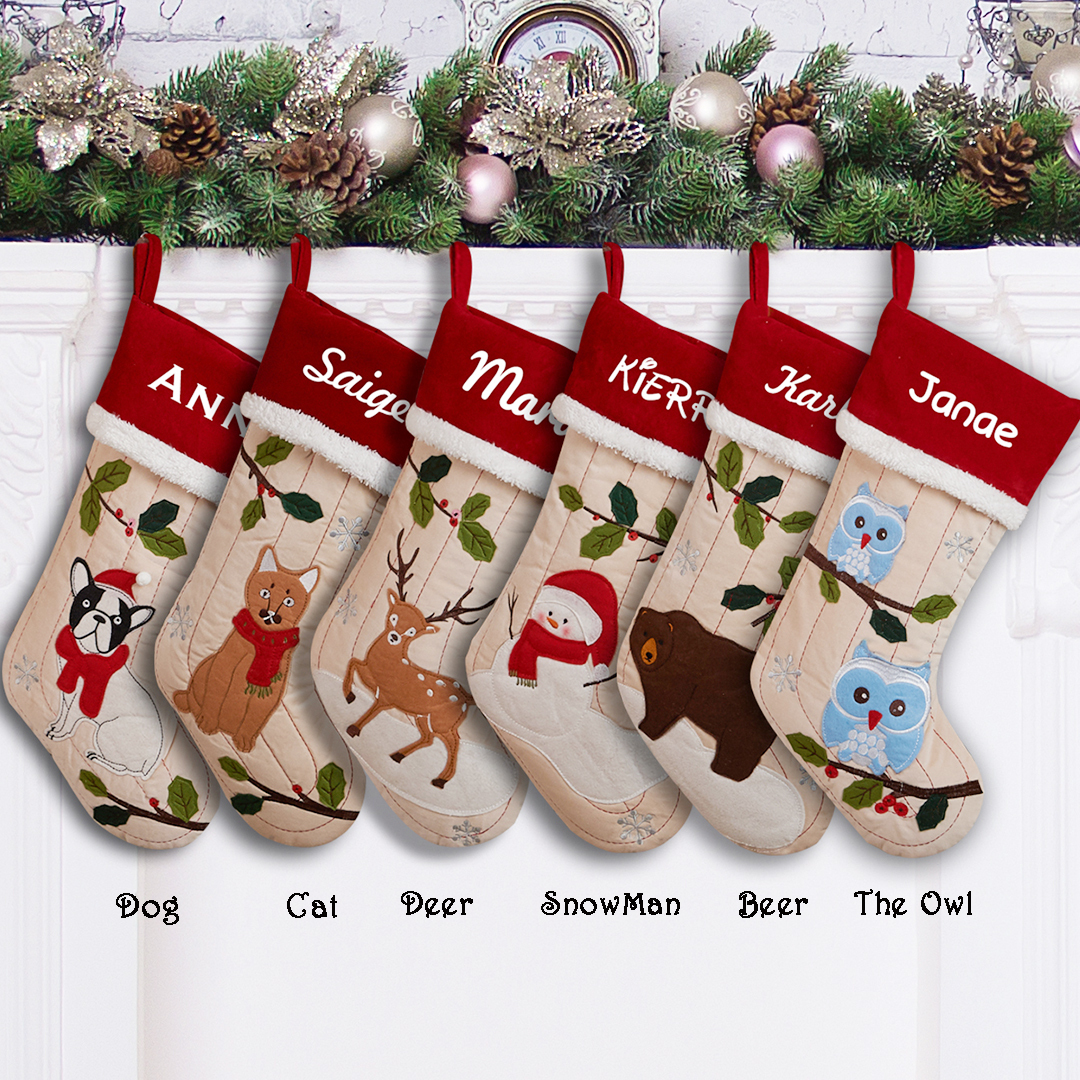 Embroideried Snowman/Dog/Cat Xmas Stocking