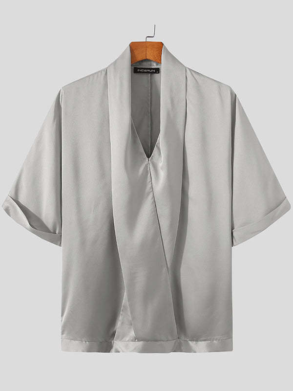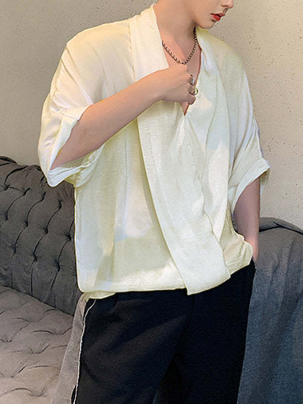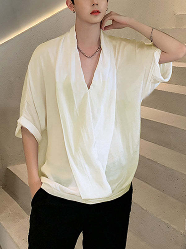 Mens Deep V-neck Half Sleeve Loose Shirts SKUG84125