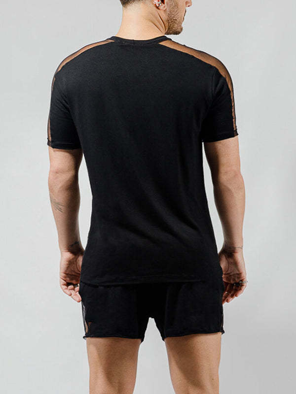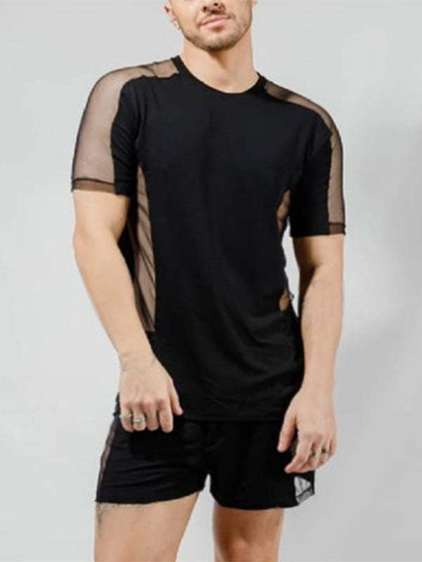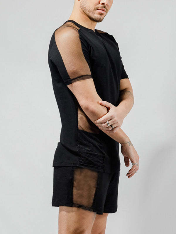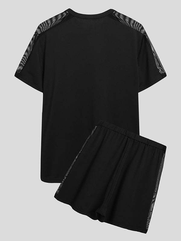 Mens Mesh Patchwork Short Sleeve Shorts Set SKUH70788