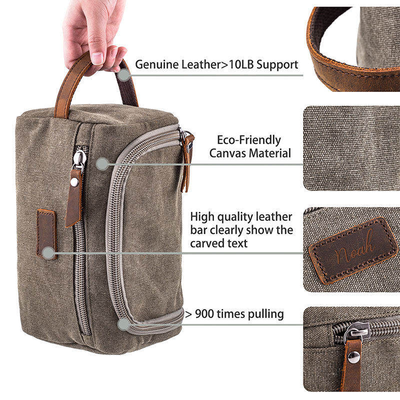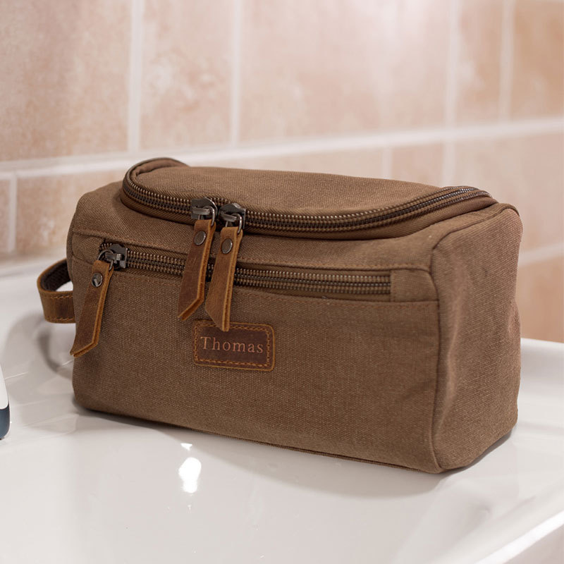 Looking to get your groomsmen something which is functional? This canvas and leather toiletry bag is a perfect man gift. An excellent addition for any stylish man on the go.