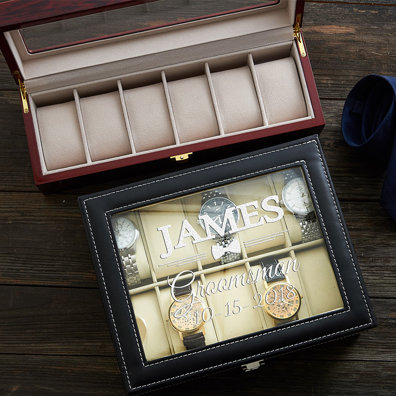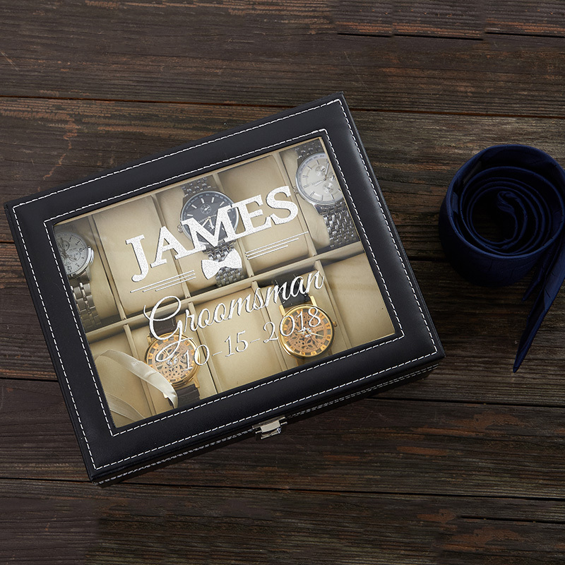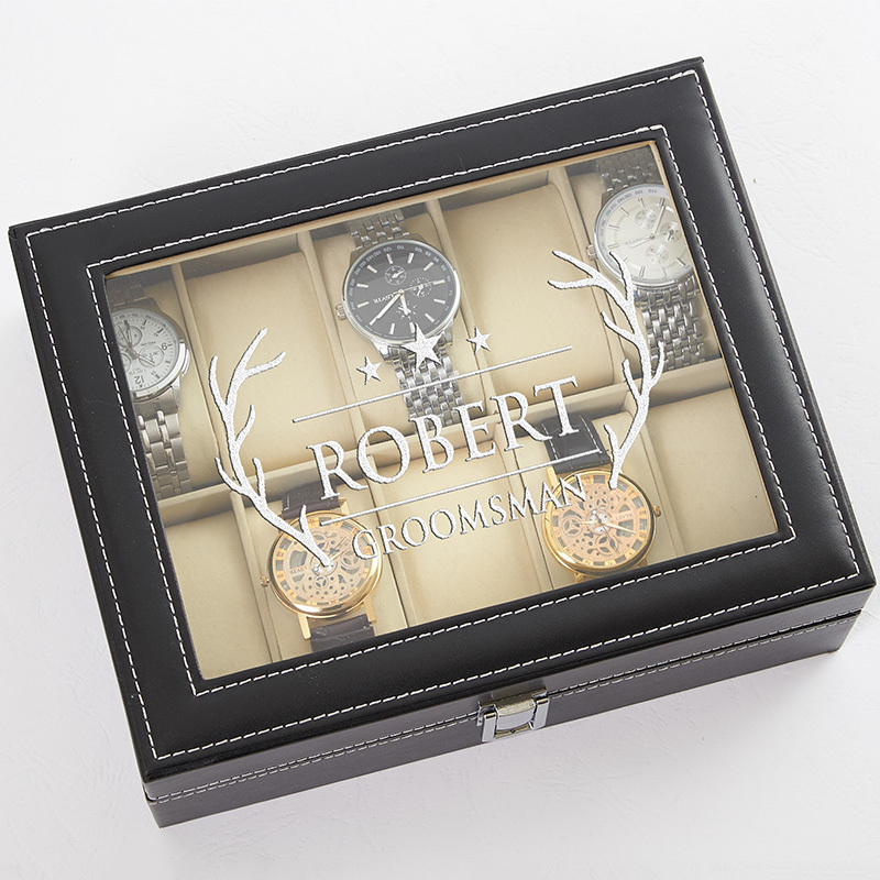 Keep your collection clean and organized with this wide slot watch case. The luxury black leatherette box with white contrast stitching is sure to be an elegant touch in any room. Also, makes a great gift for groomsman, best man, father of the bride, birthdays, graduations, father's day, valentines day, Christmas or any other occasion.