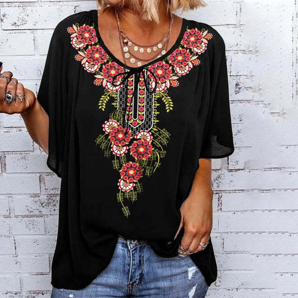 Temperament Short Sleeve Floral Print Top