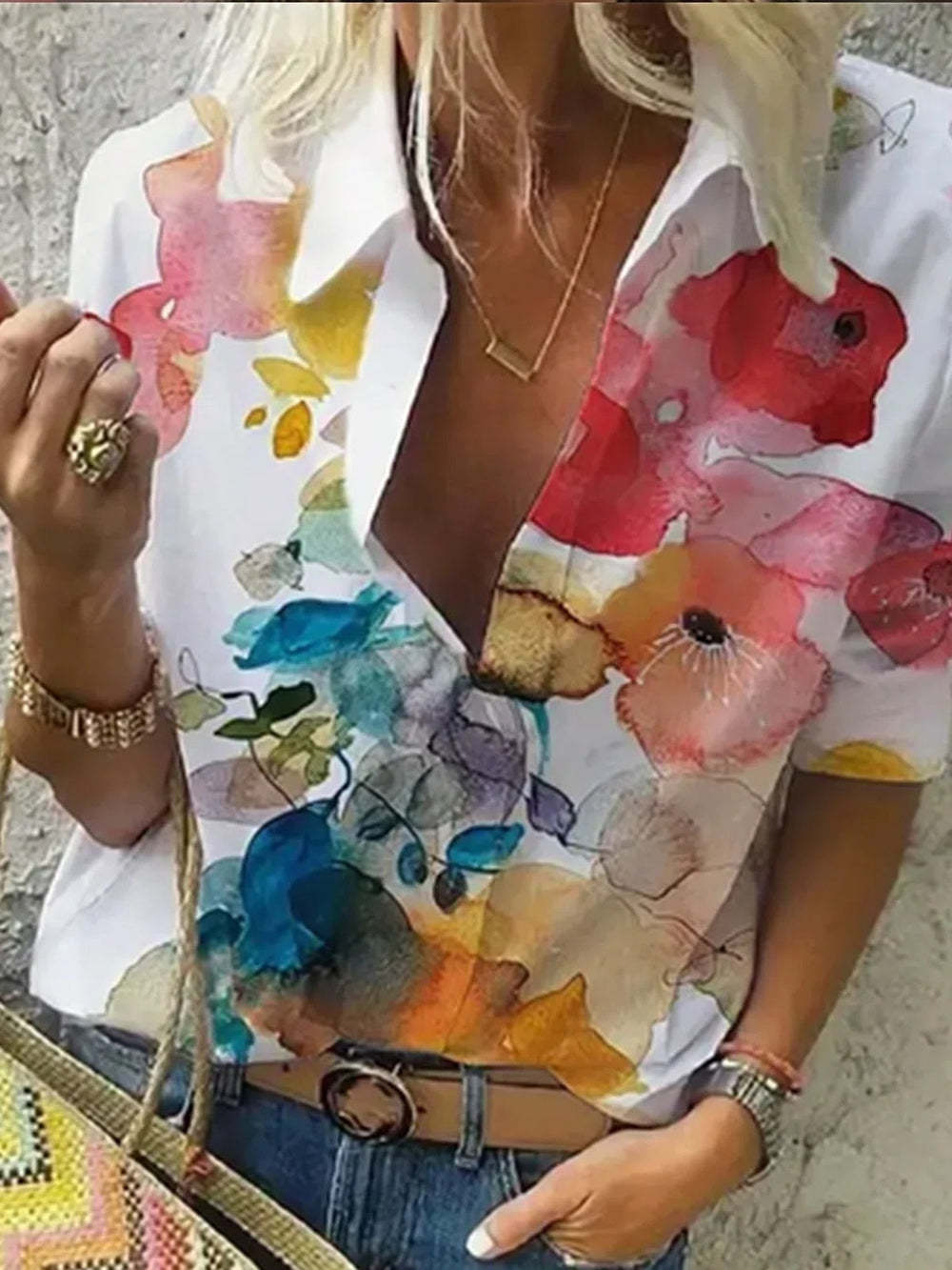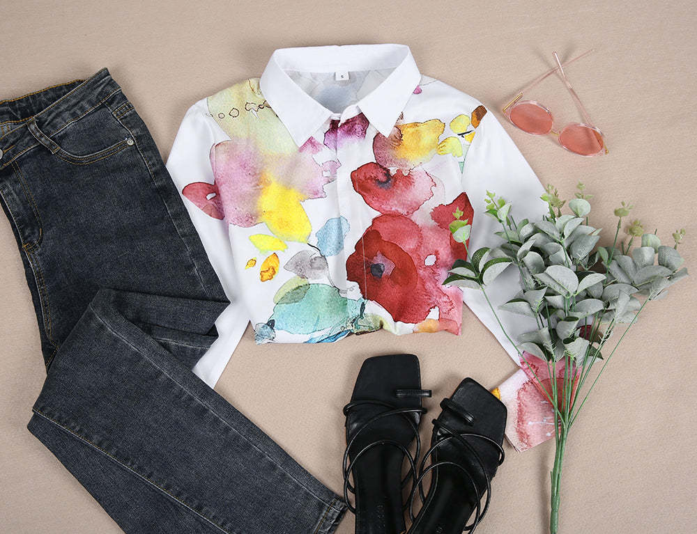 Watercolor Citrus Flowers Fold-Over Collar Top