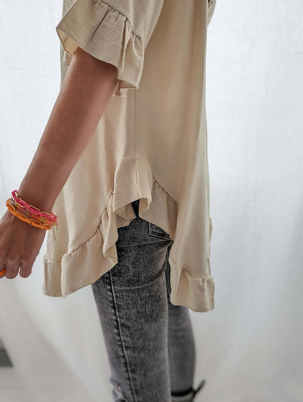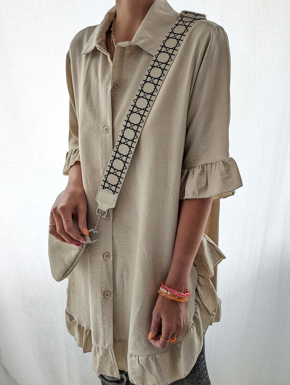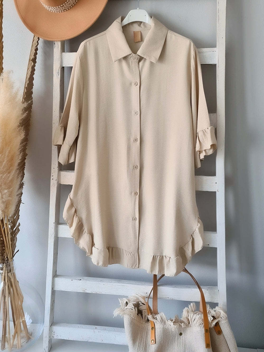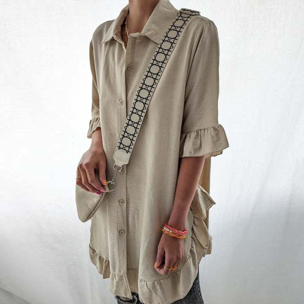 Women's Fashion New Khaki Short Sleeve Lapel Shirt