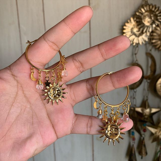 Crystal Hoop Earrings Hanging Earrings with Sun Moon and Stars Charm Celestial Gift