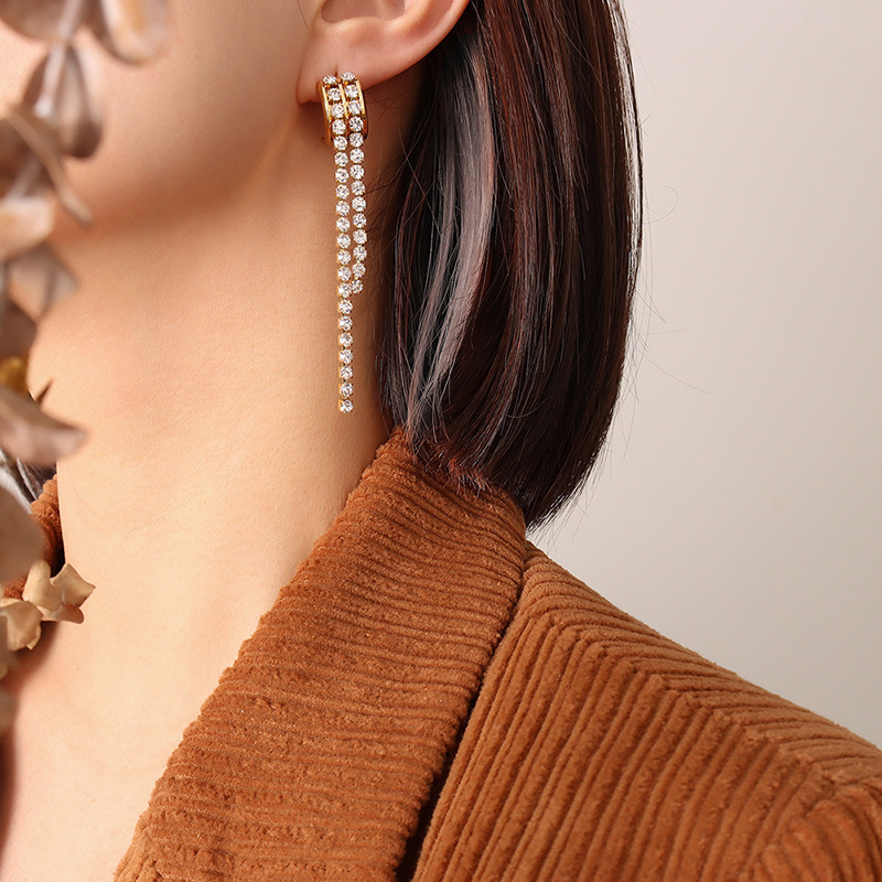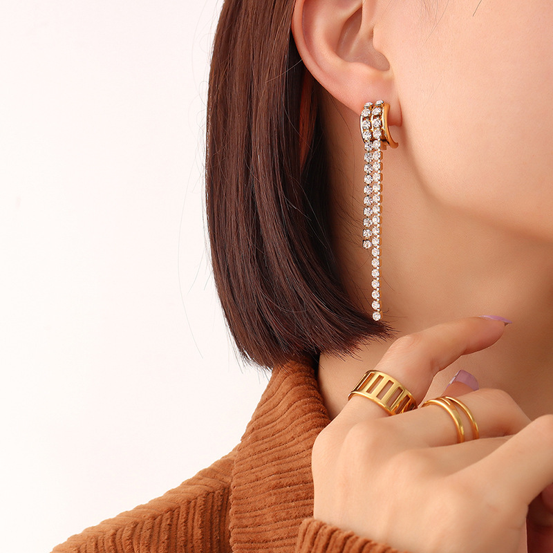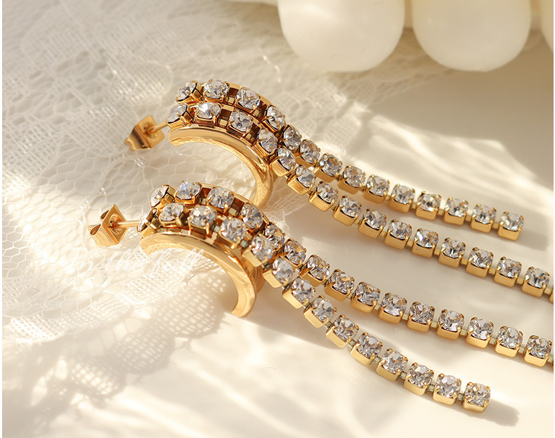 Diamonds Tassel Splicing C Shape Hoop Earings