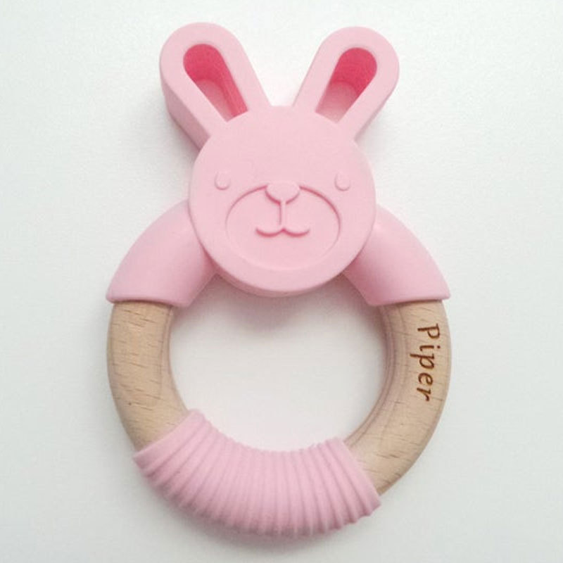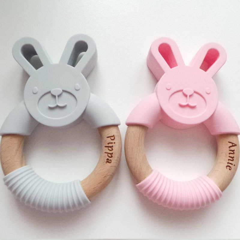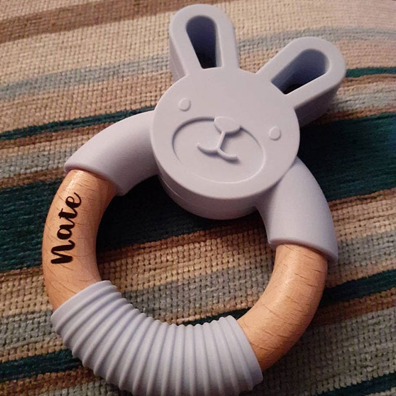 Personalised Bunny Teether, Easter Wooden Teething Ring