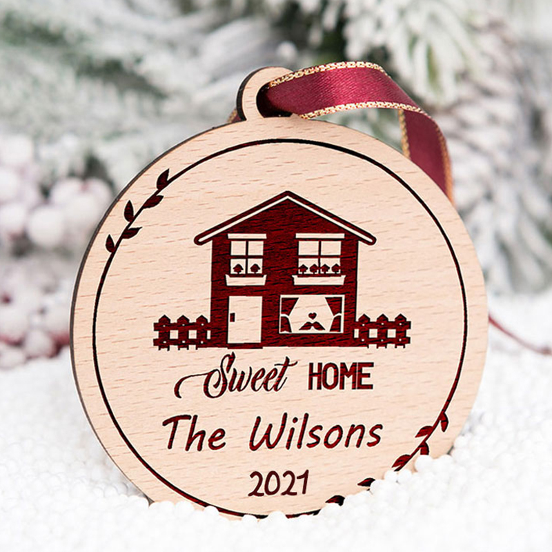 Personalized Christmas Sweet Home Wood Ornament