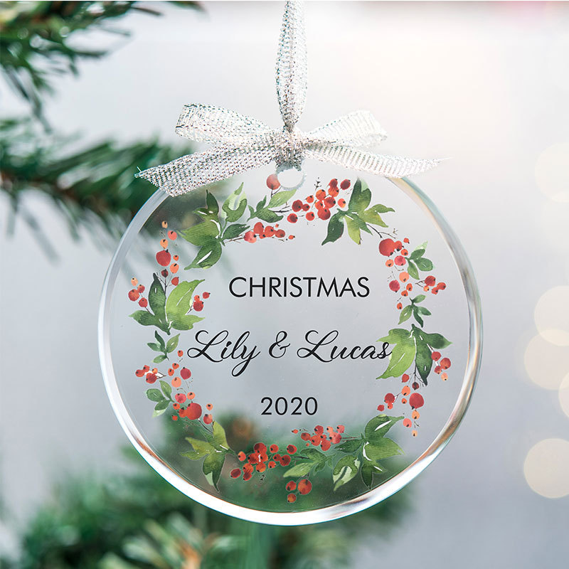 Personalized Glass/Crystal Ornament for Lovers/Couples/Emgagements