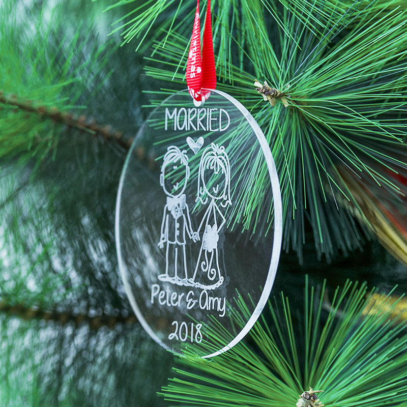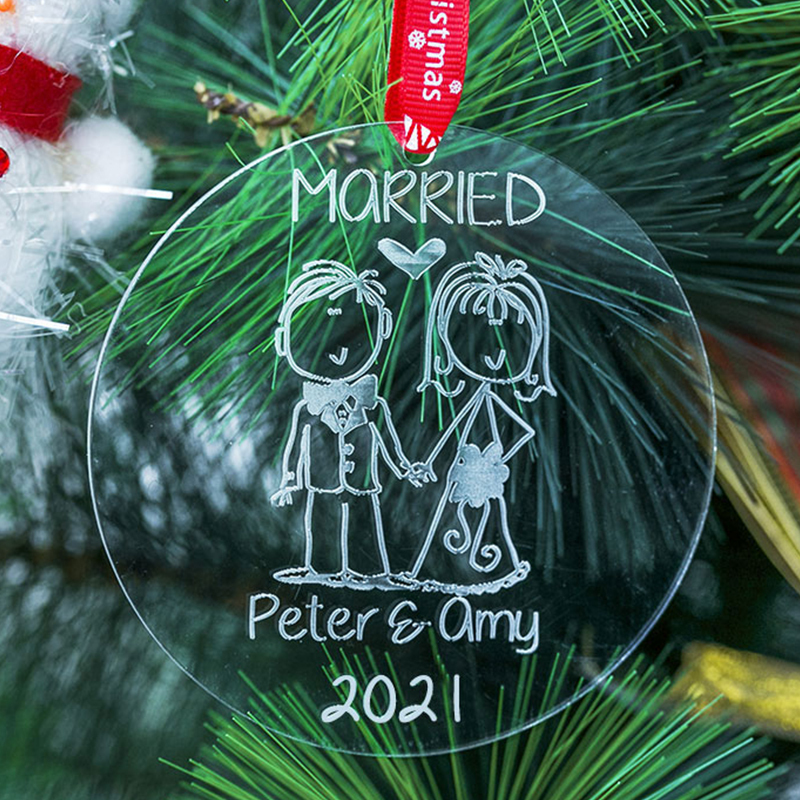 Personalized Married Christmas Ornament Laser Engraved Acrylic