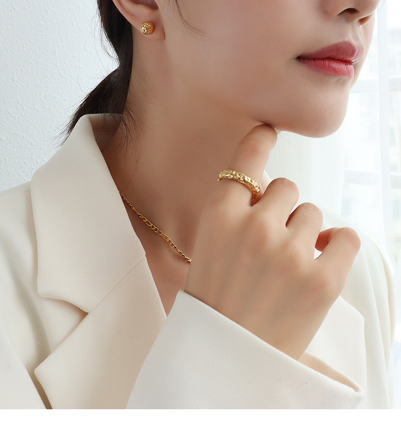 Hammering the irregular bump texture creates that French style taste. It can be a perfect match with our Tin Foil Texture Earing Studs! Go take a look in our Earing Section!