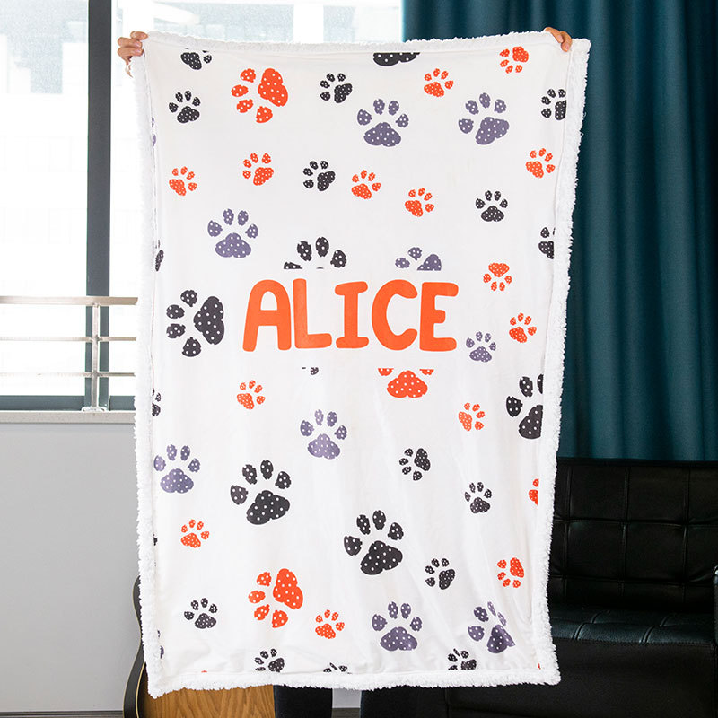 Custom Pet Dot & Heart Pawprint Sherpa Blanket