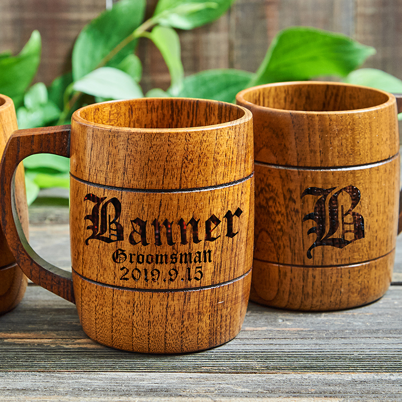 Wooden mugs are perfect gift for grooms and groomsmen