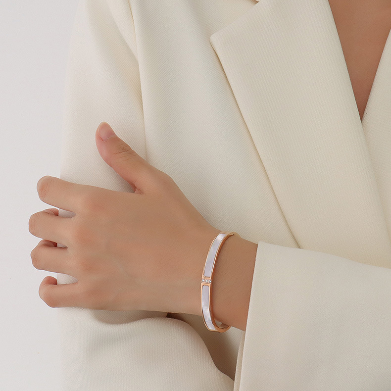 Double Black Stripes With Three Diamonds Inlaid Bangle