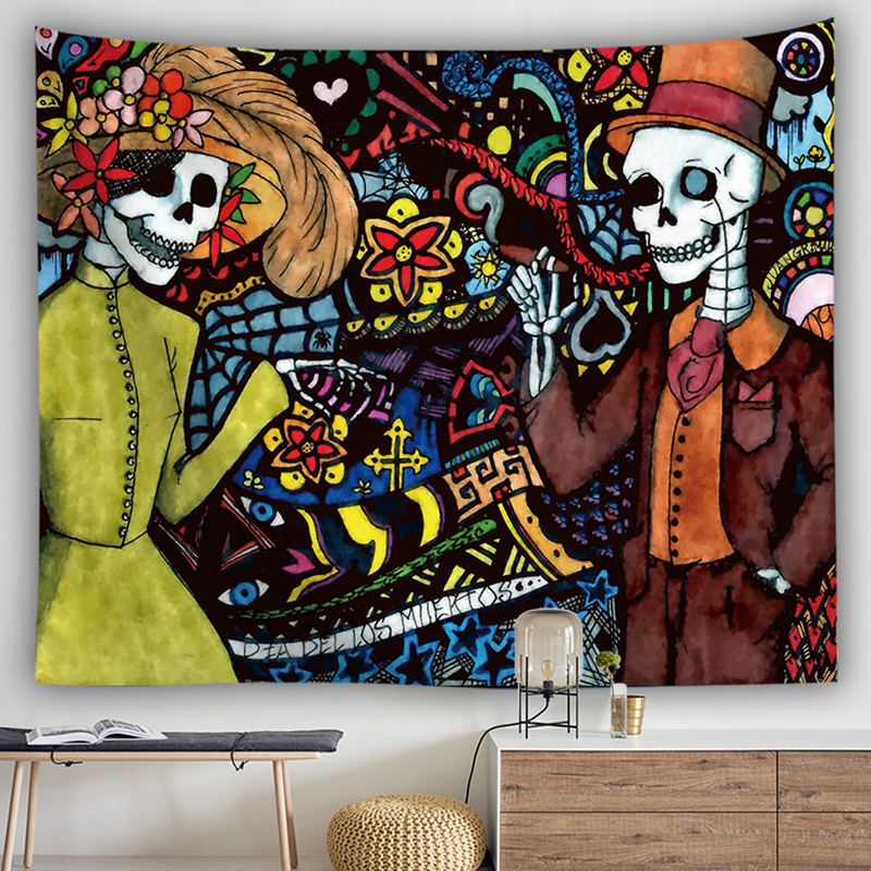 The Skull Couple - Crescent - 3D Beautiful Pattern Printed Tapestry