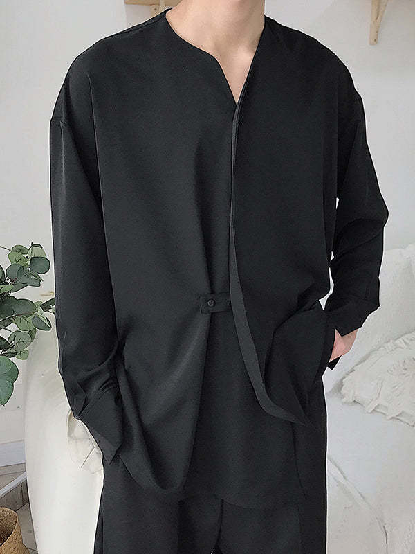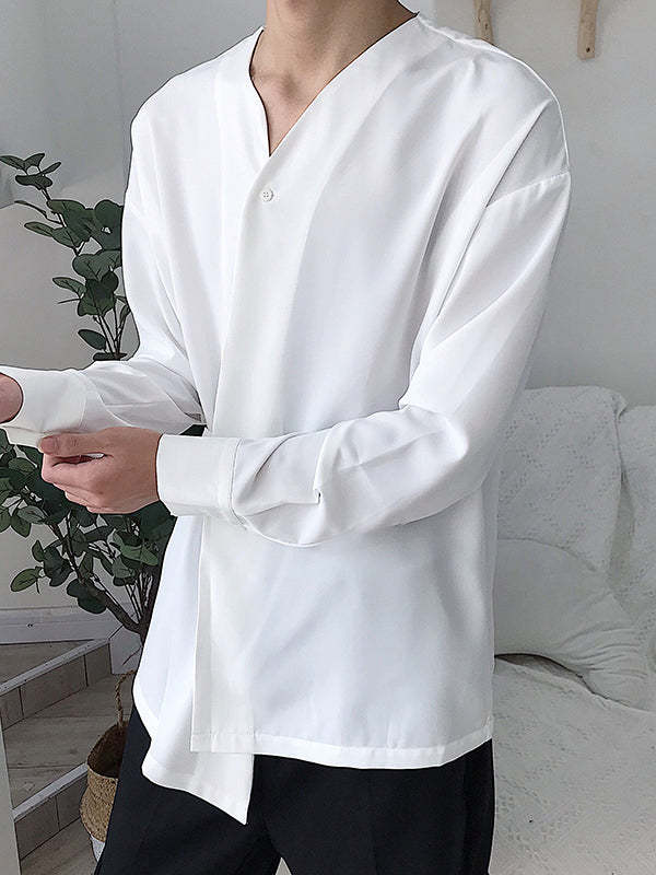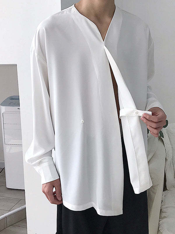 Mens Irregular Button Drape Solid Color Shirts SKUH27251