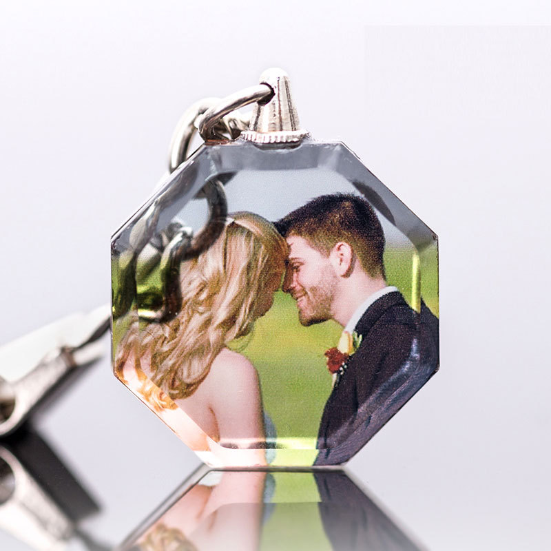 It is made of crystal, high transparency, not easy to scratch, make clear. 2 photos can be printed in one item also you can print 1 photo on it.