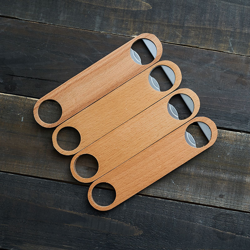 This is a flat wooded bottle opener.