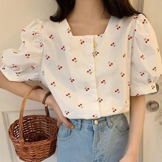 スウェット元気いっぱいファッションプリント半袖スクエアネックシャツ