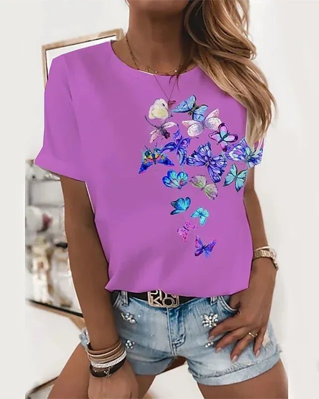 Women's T shirt Graphic Butterfly Print Round Neck Tops