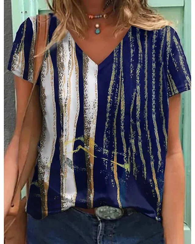 Women's T shirt Striped Color Block Print V Neck Tops