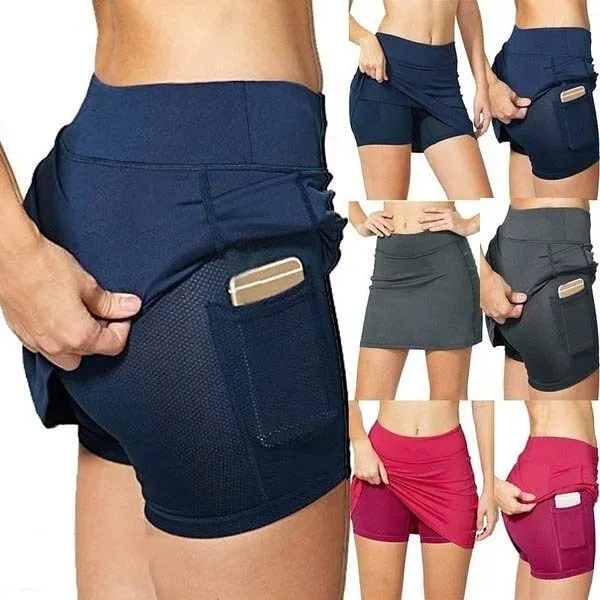 Women's Athletic Skort Running Skirt Athletic Bottoms 2 in 1 with Phone Pocket Liner Spandex