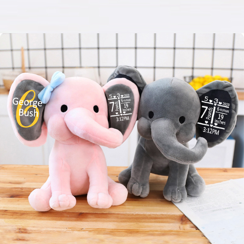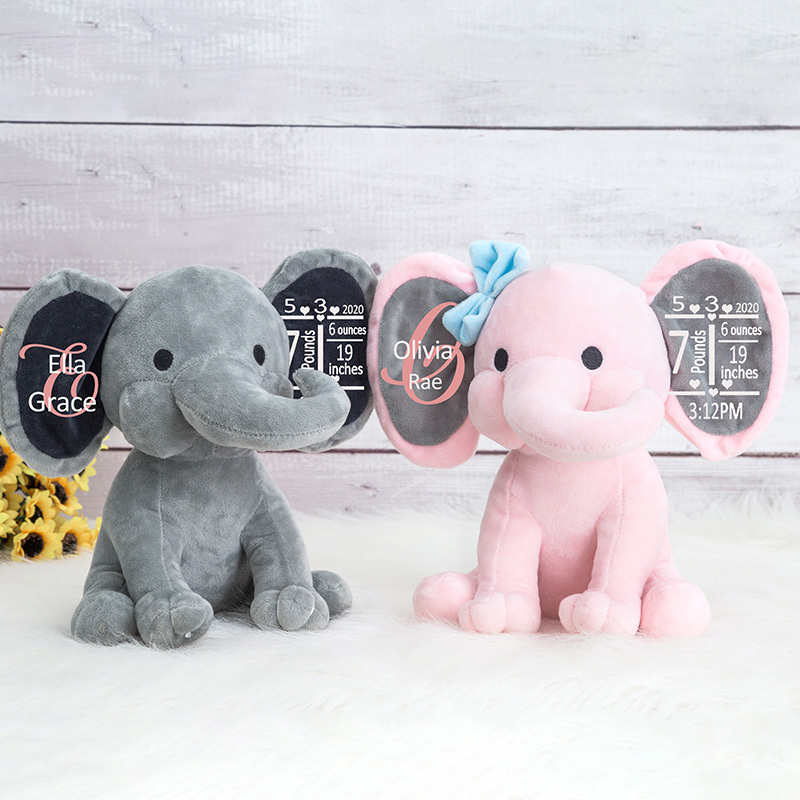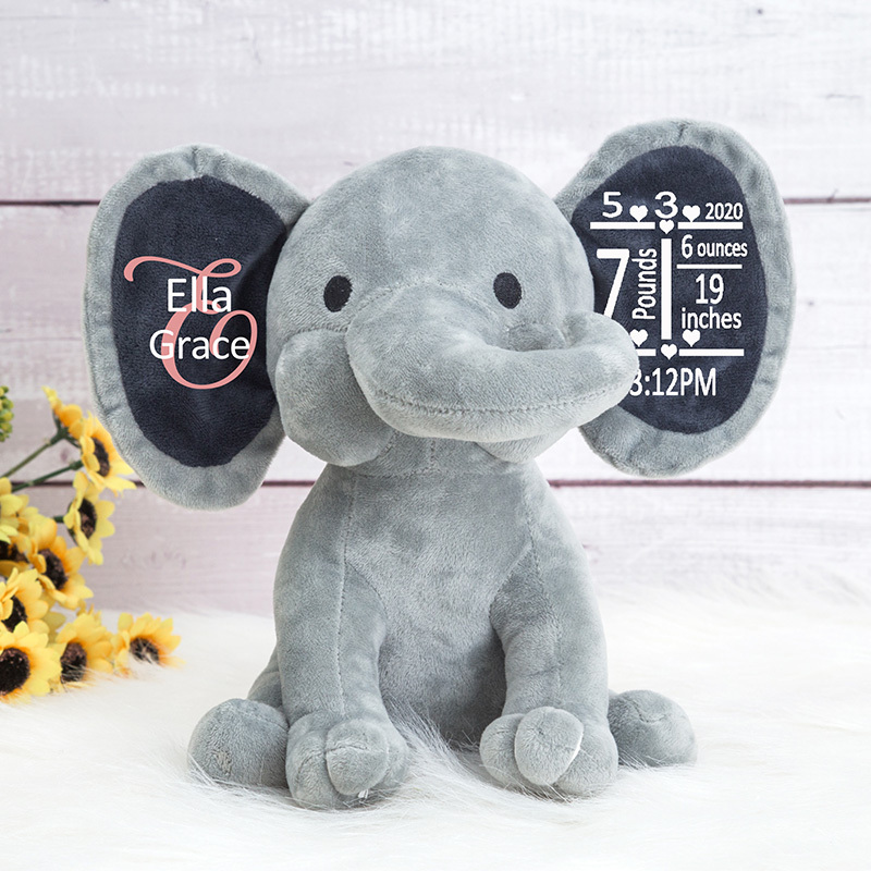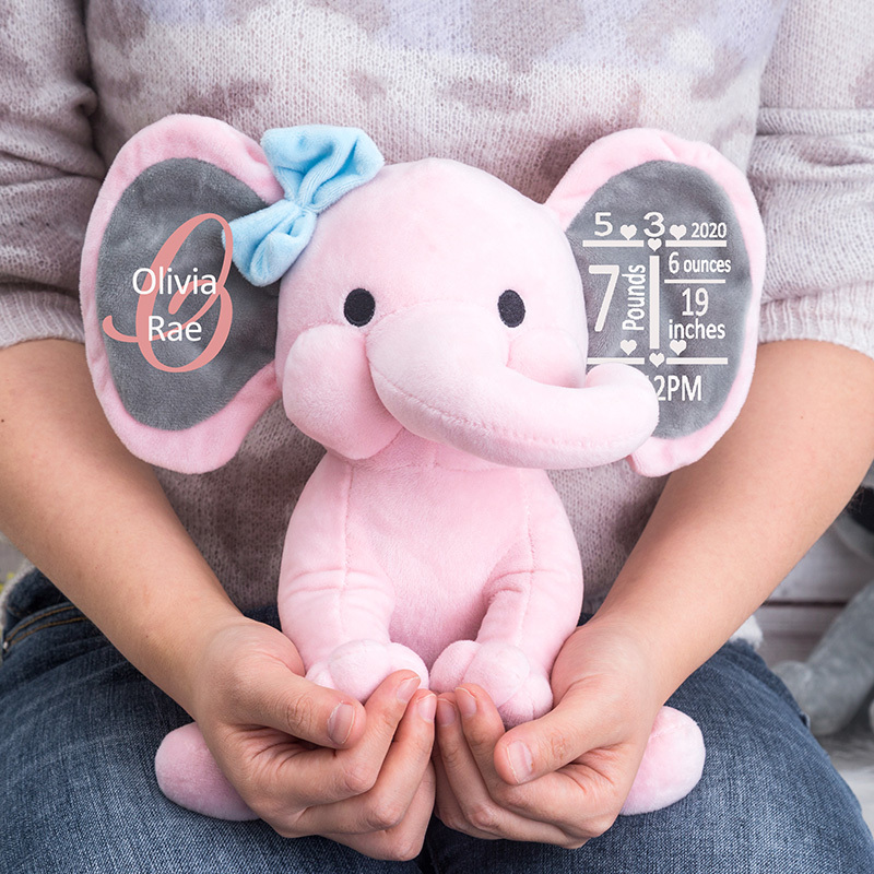 This adorable personalized plush elephant is the perfect gift for a new baby!