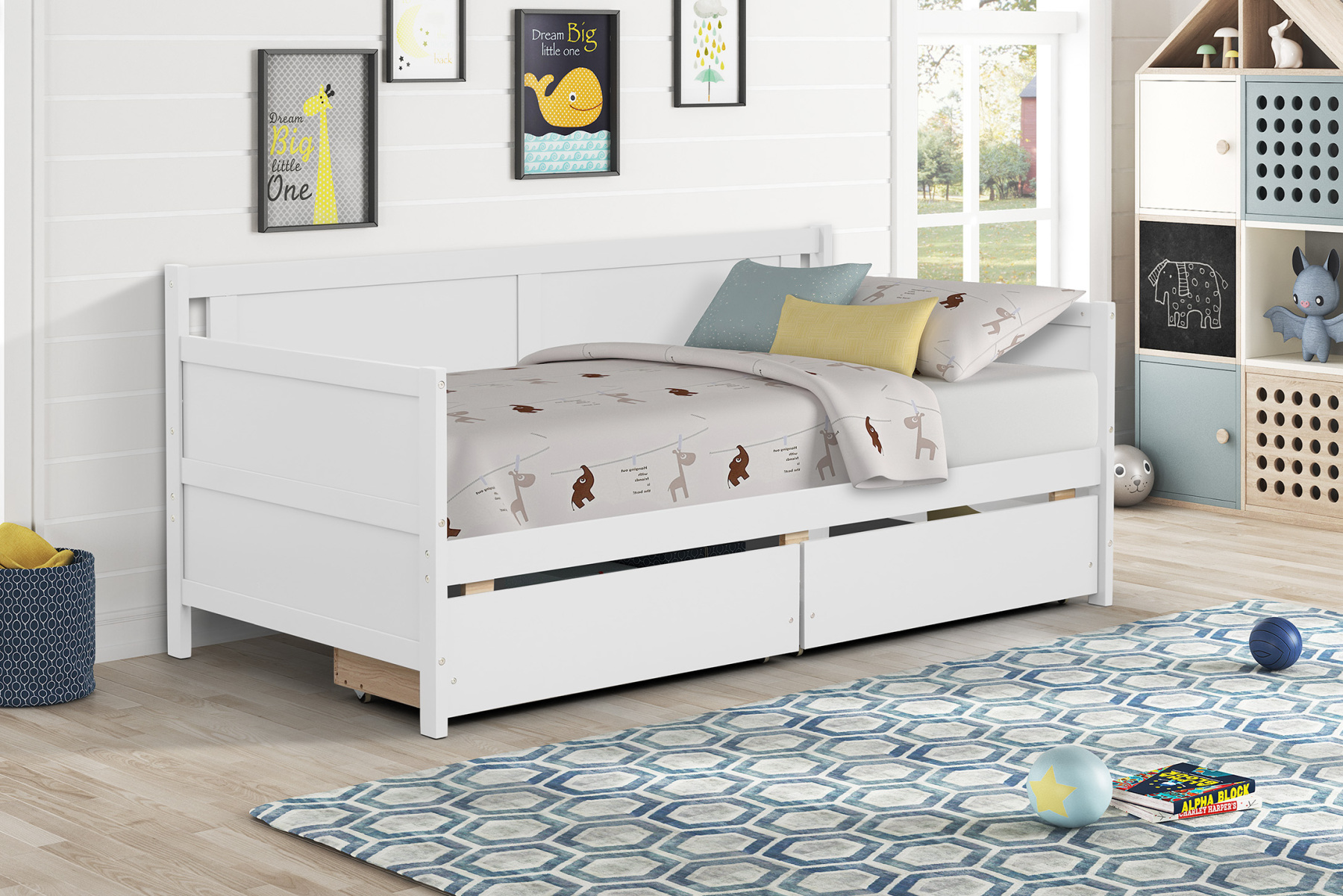 Captain's Bed Twin Daybed with Storage Drawers, Space-Saving Sofa Bed for Bedroom Living Room, No Box Spring Needed, White