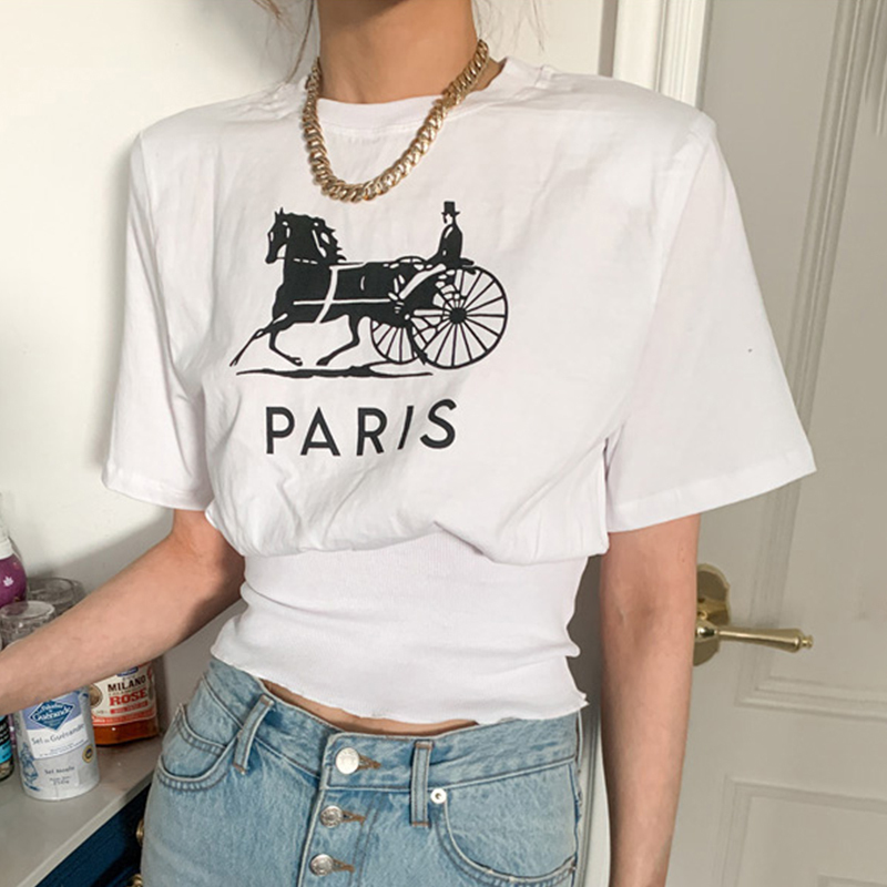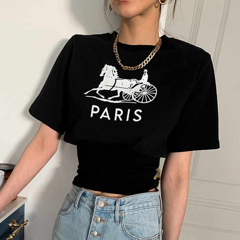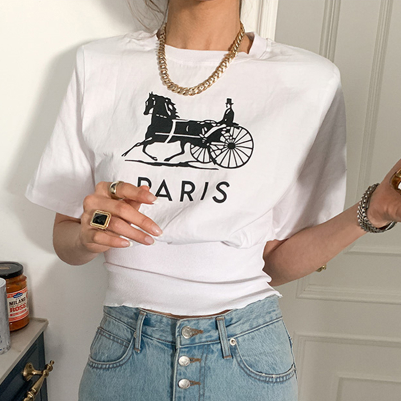 CCSHOP 合わせやすい 着瘦せ 半袖 ラウンドネック プリント アルファベット カートゥーン 夏 トップス