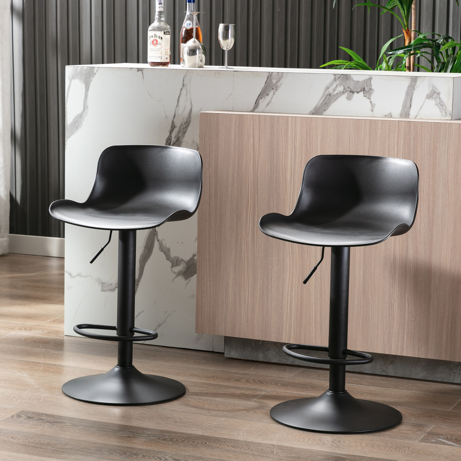 Counter Height Swivel Bar Stools, 2 PCS Low-Back Bar Stool Bar Chair, Adjustable-Height Pub Stool for Bar, Kitchen, Dining and Bistro Pub
