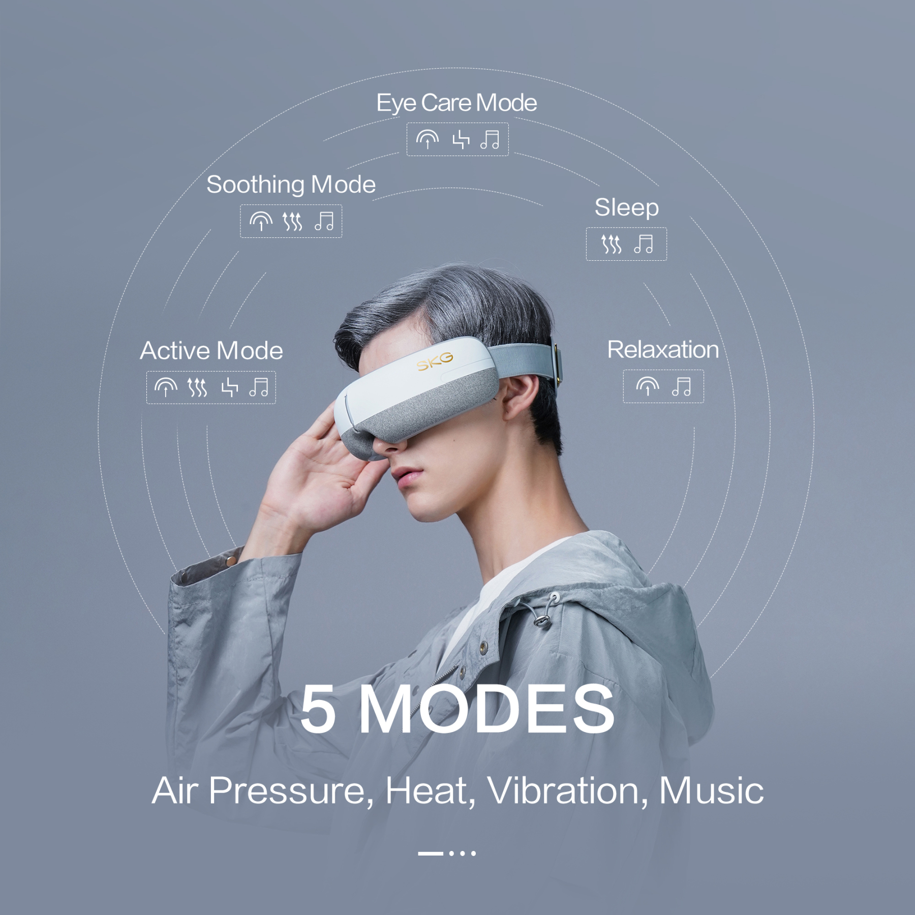 Mode 3: Eye care mode (air pressure + vibration + music)