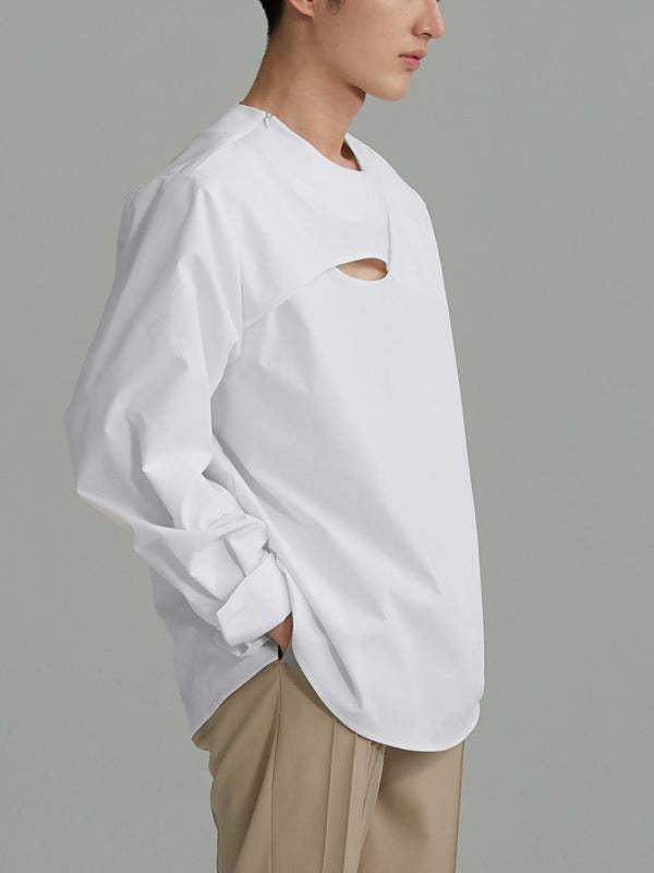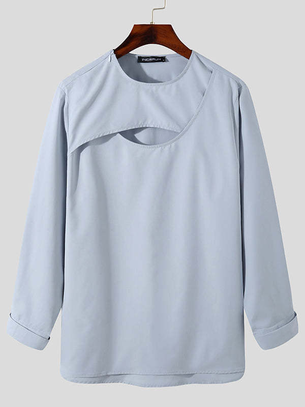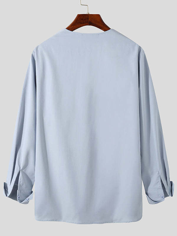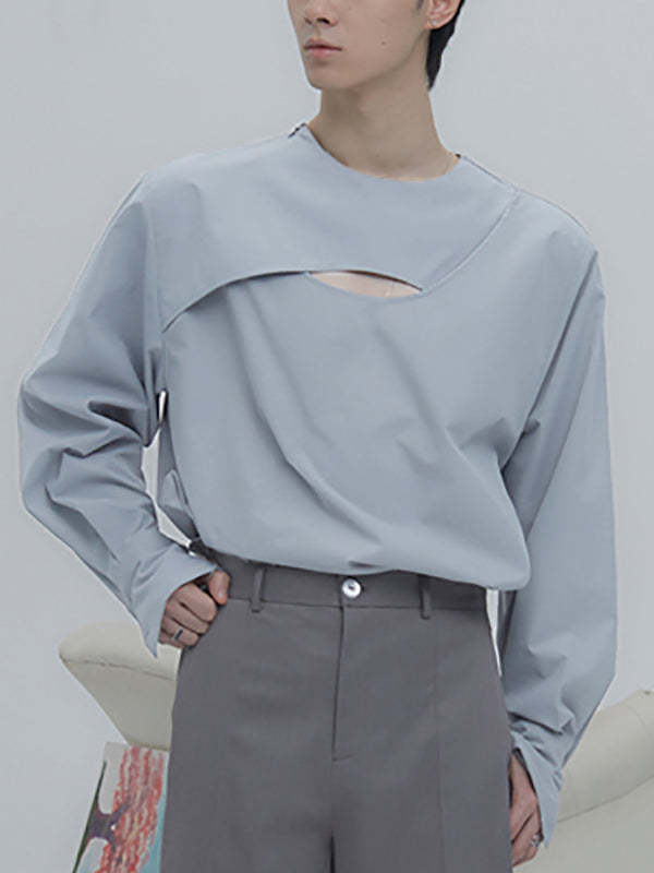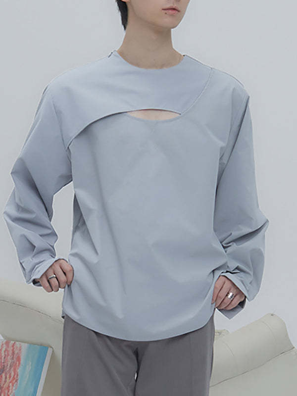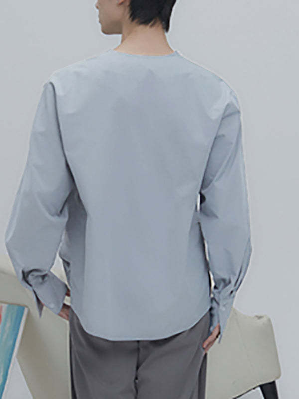 Men's Loose Solid Color Long-sleeved T-Shirts SKUH79076
