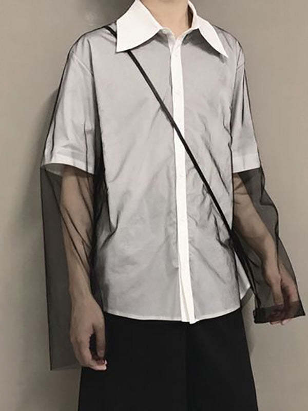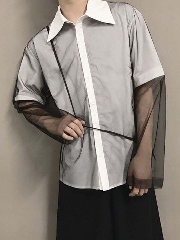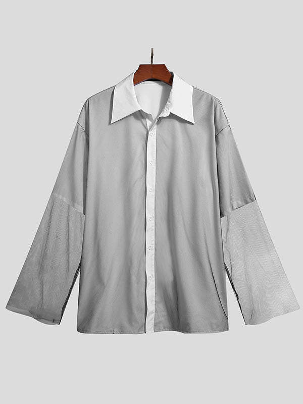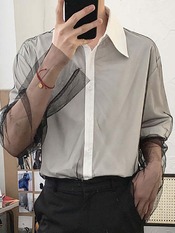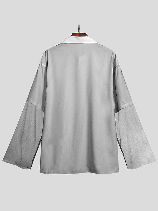Mens Patchwork Mesh Long-sleeved Shirts SKUH38538