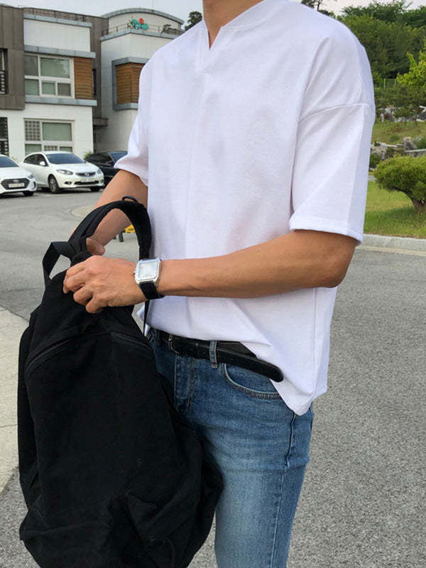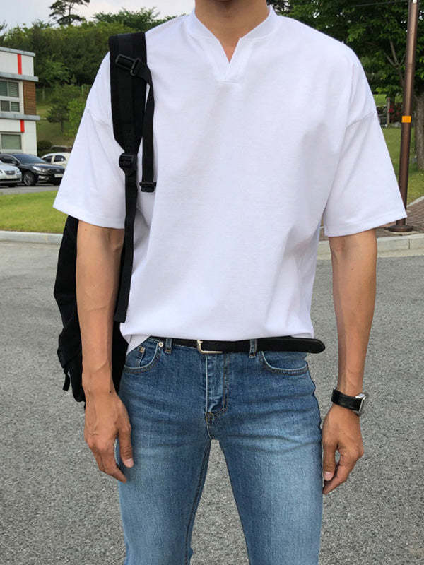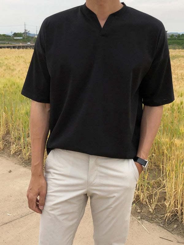 Men's V-neck Loose Short-sleeved Shirts SKUH05263