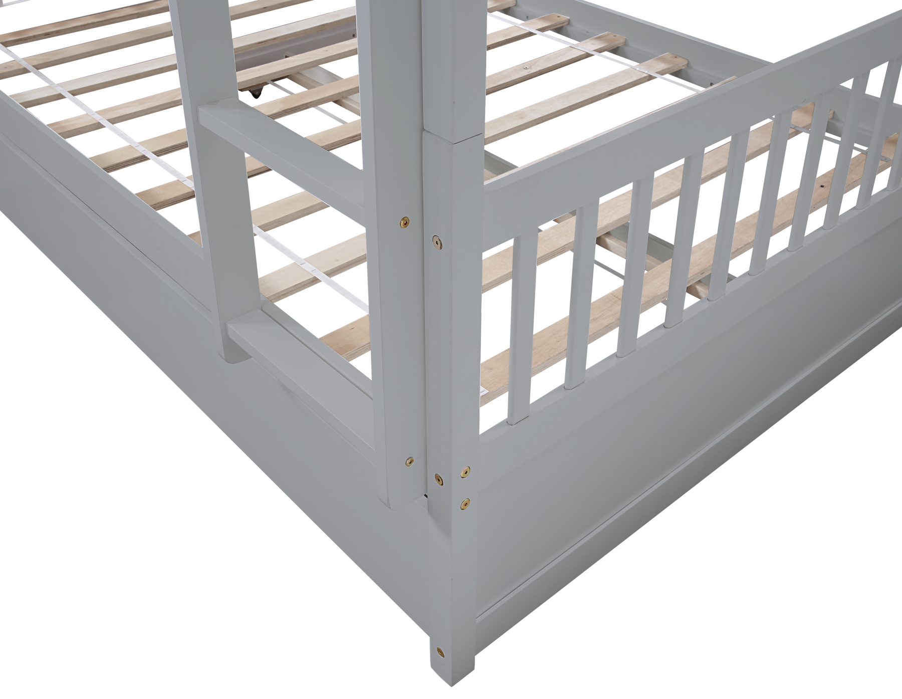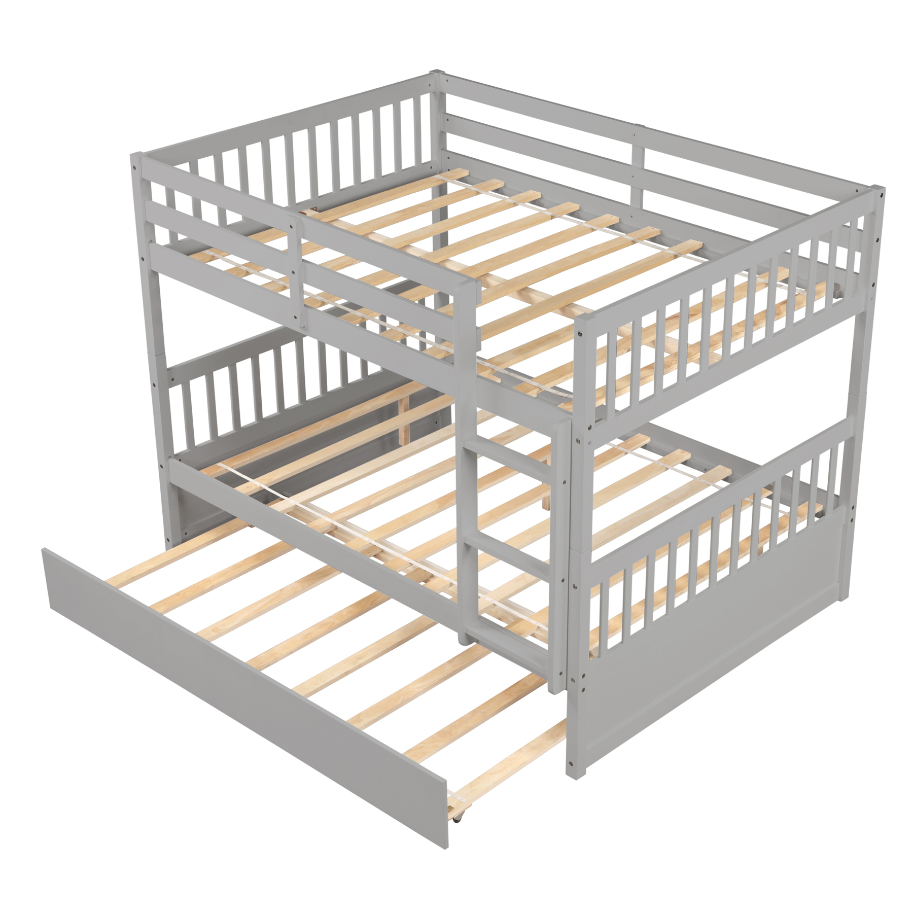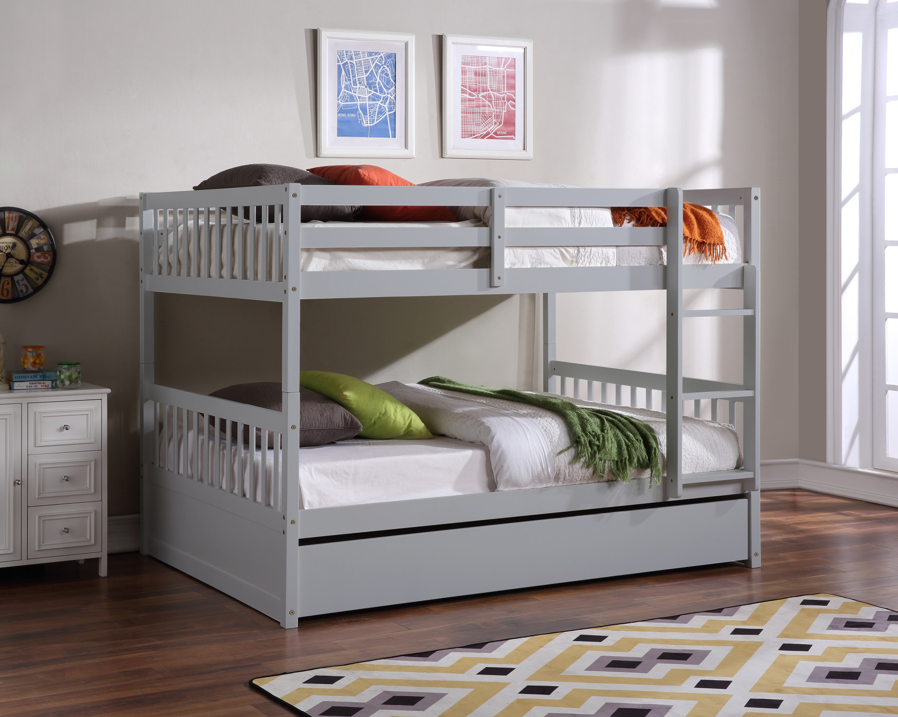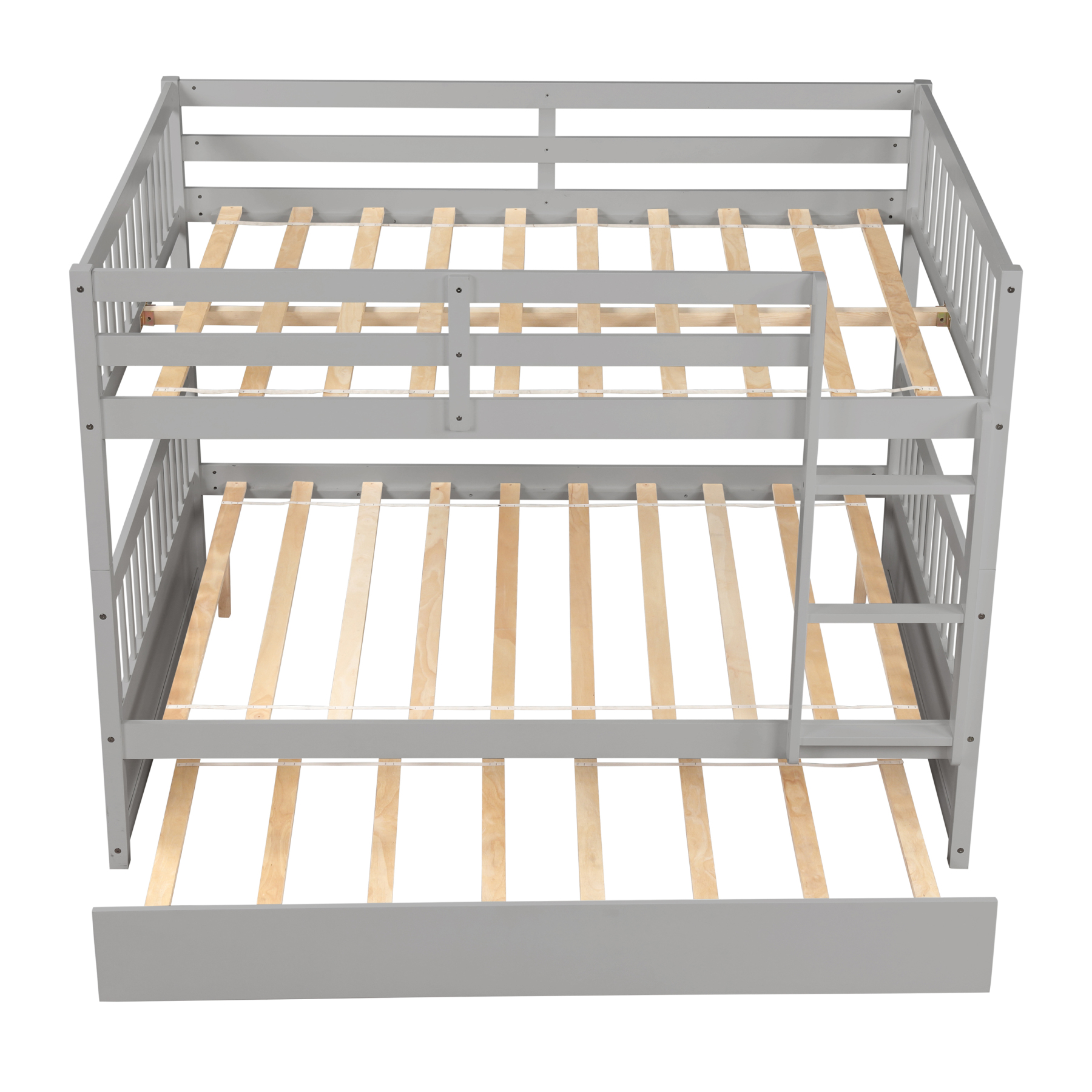 Space Saving Bunk Bed, Solid Wood Full over Full Bunk Bed with Trundle for Kids and Adults in Grey