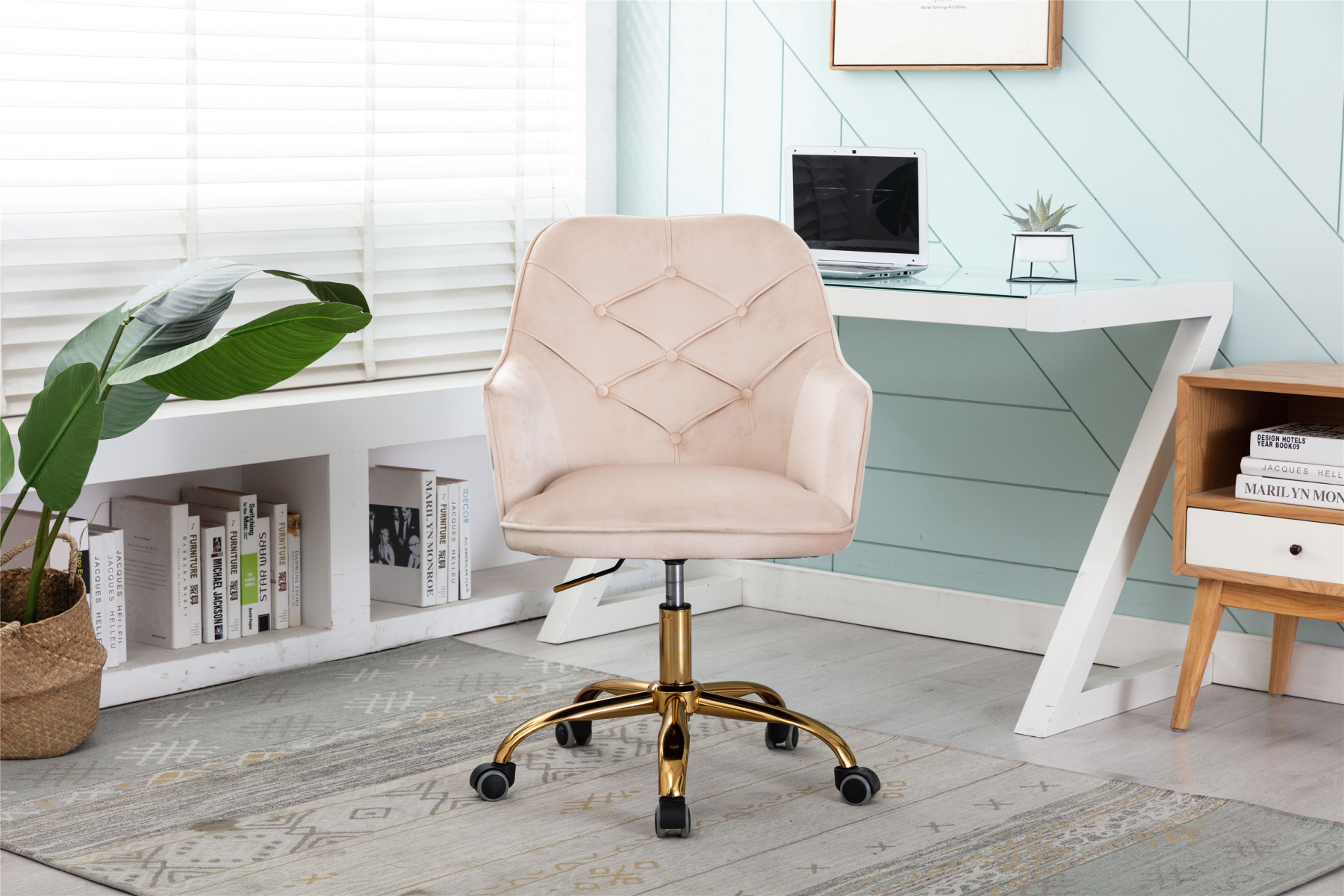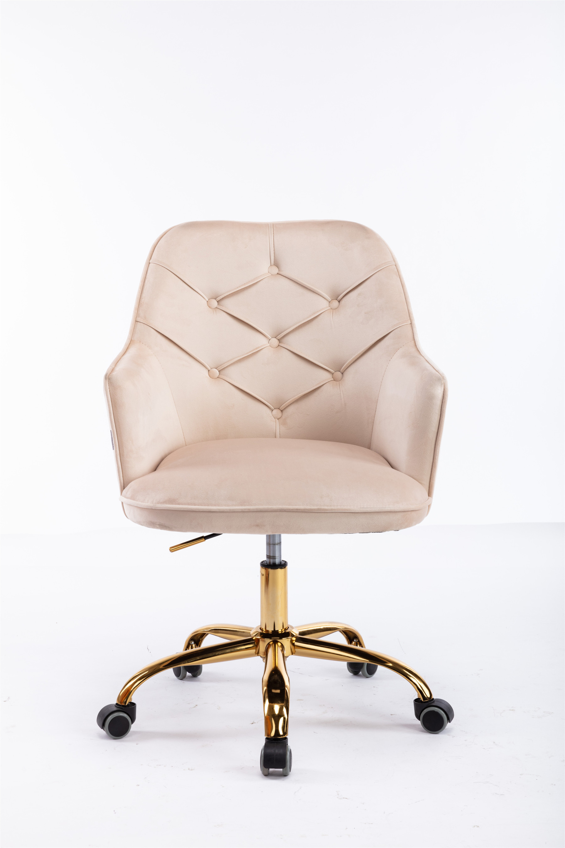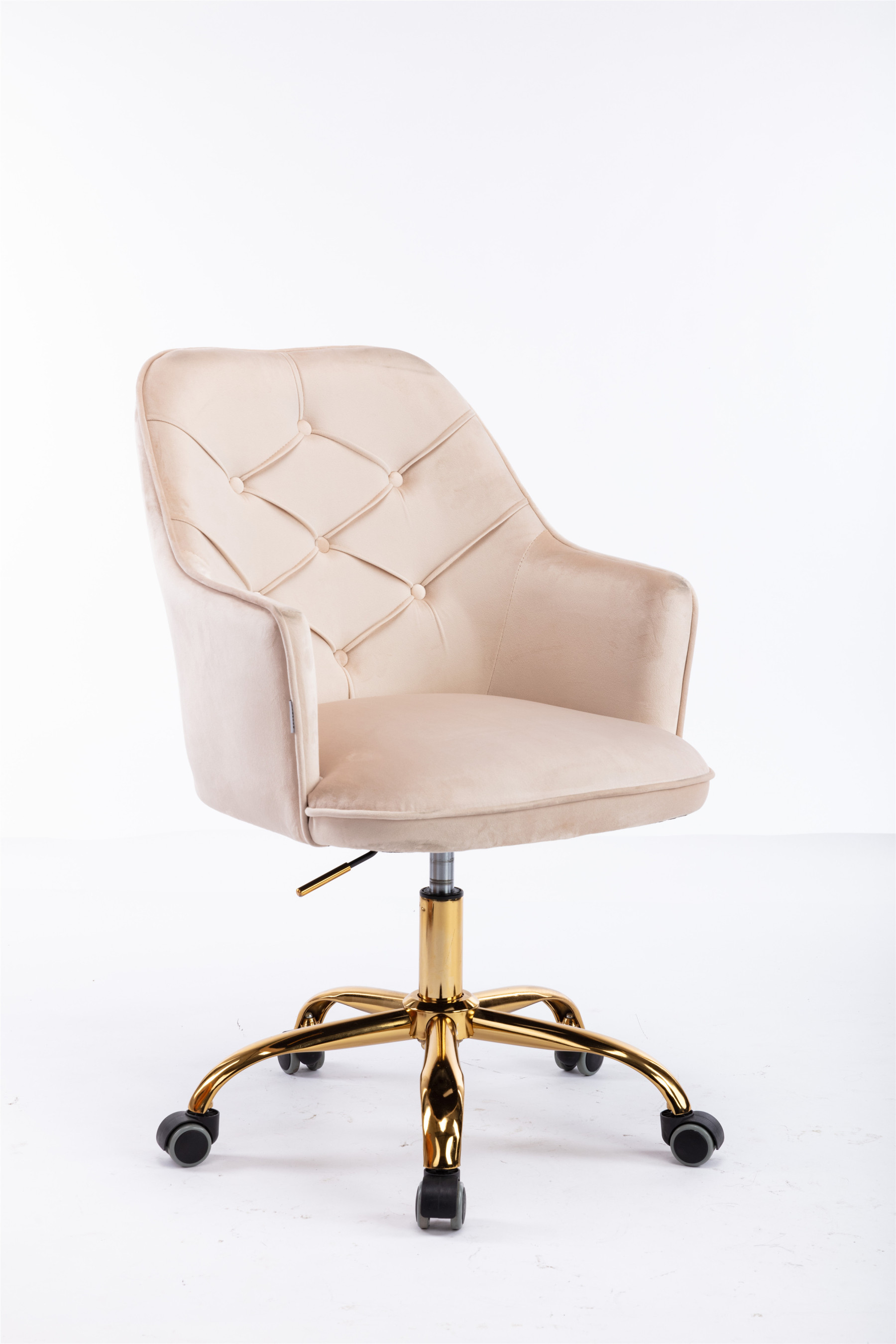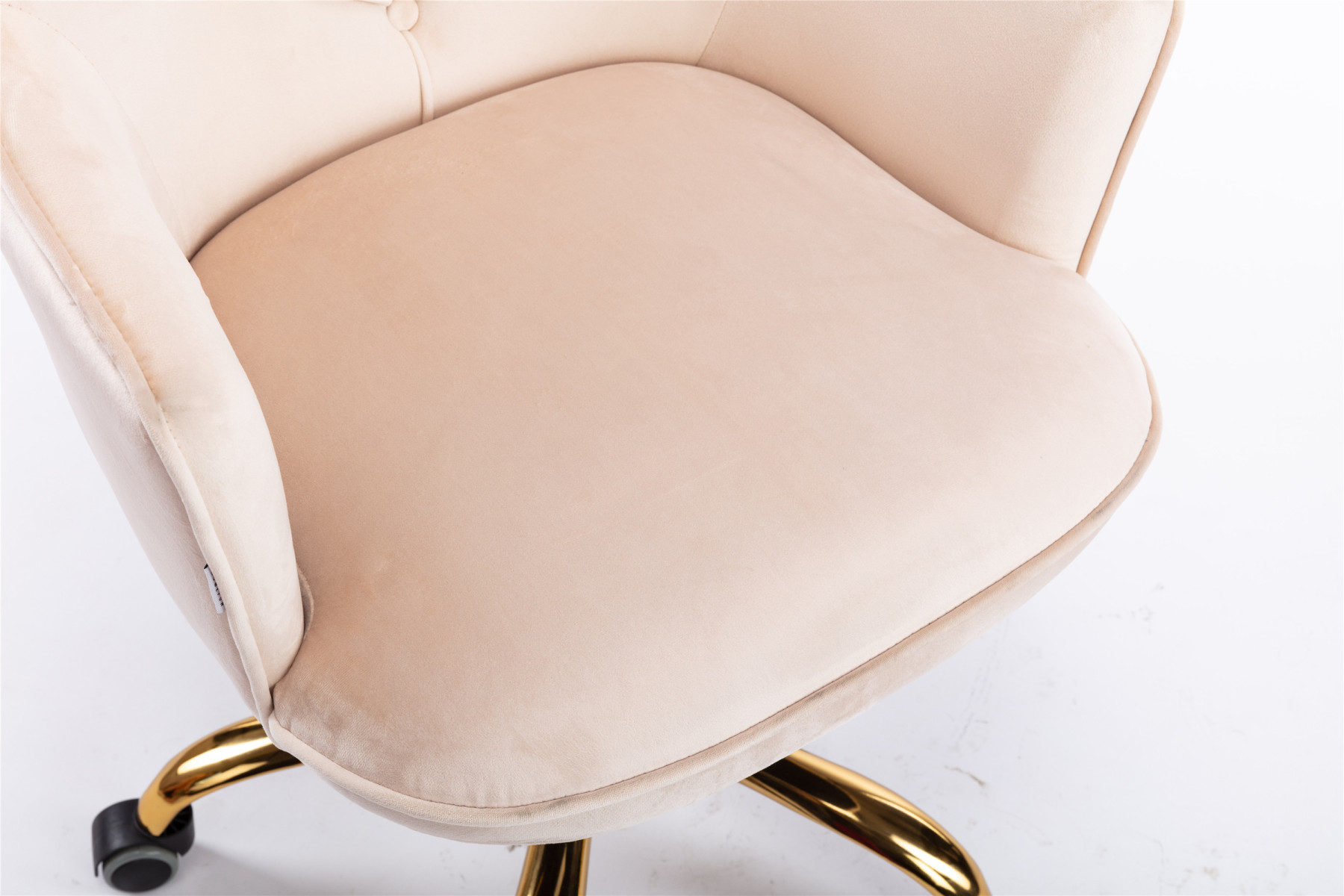 Swivel Vanity Velvet Chair Shell Computer Chair Rolling Makeup Armchair Office Desk Chair in Beige