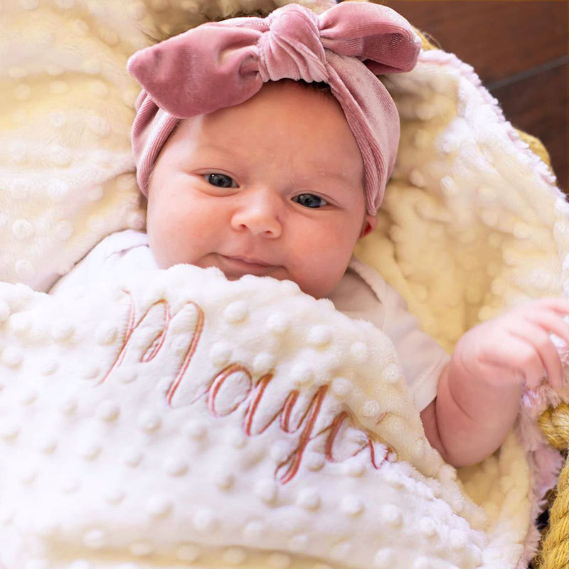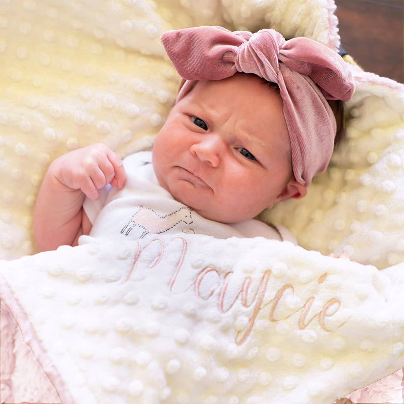 This blanket makes a memorable gift for a new baby! You will be the talk of the baby shower with this personalized baby blanket. This blanket will easily be one of your babies favorite blankets.