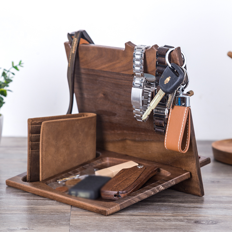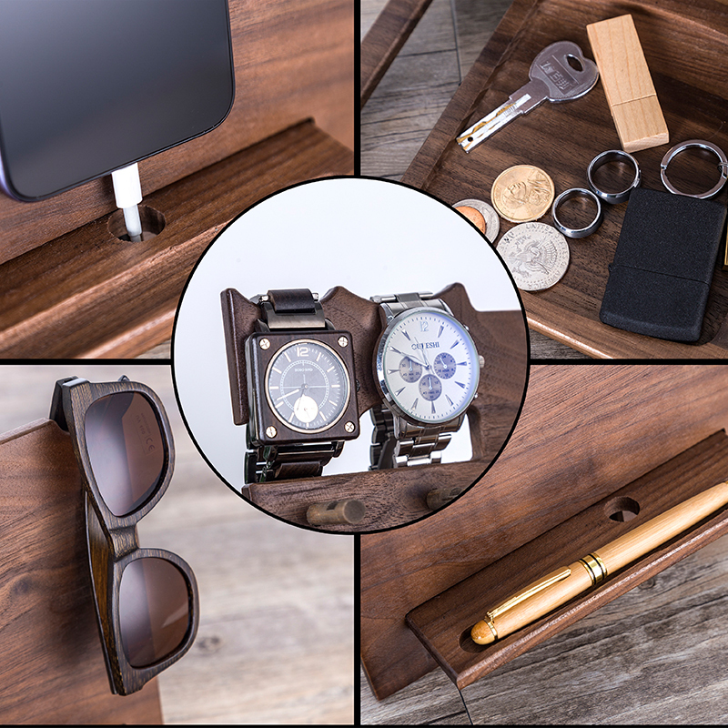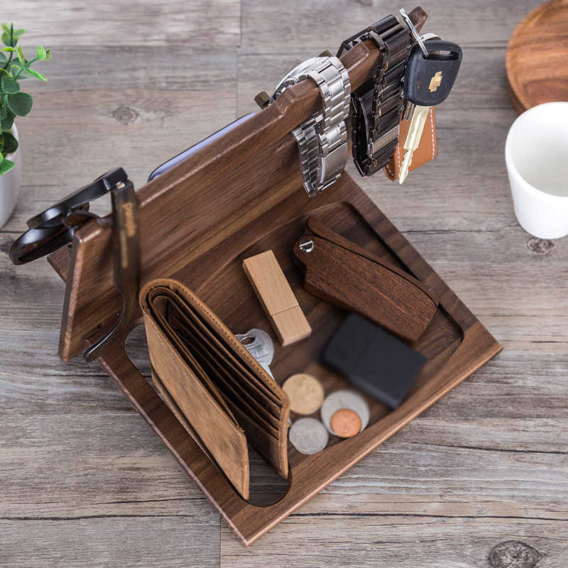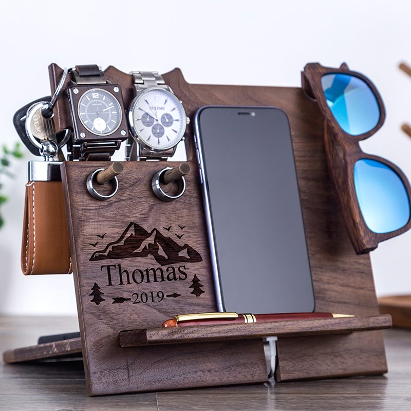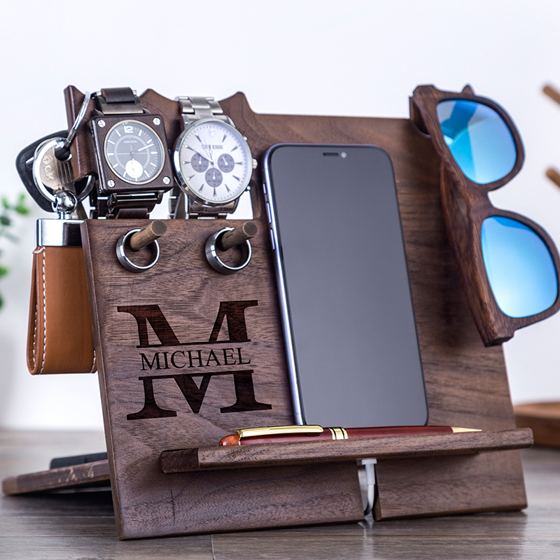 Our docking station is engraved with a beautiful design. It will be wonderful gift idea for men, dad, husband, boyfriend, brother or son. It can hold your glass, phone, wallet, keys, watch and so on.