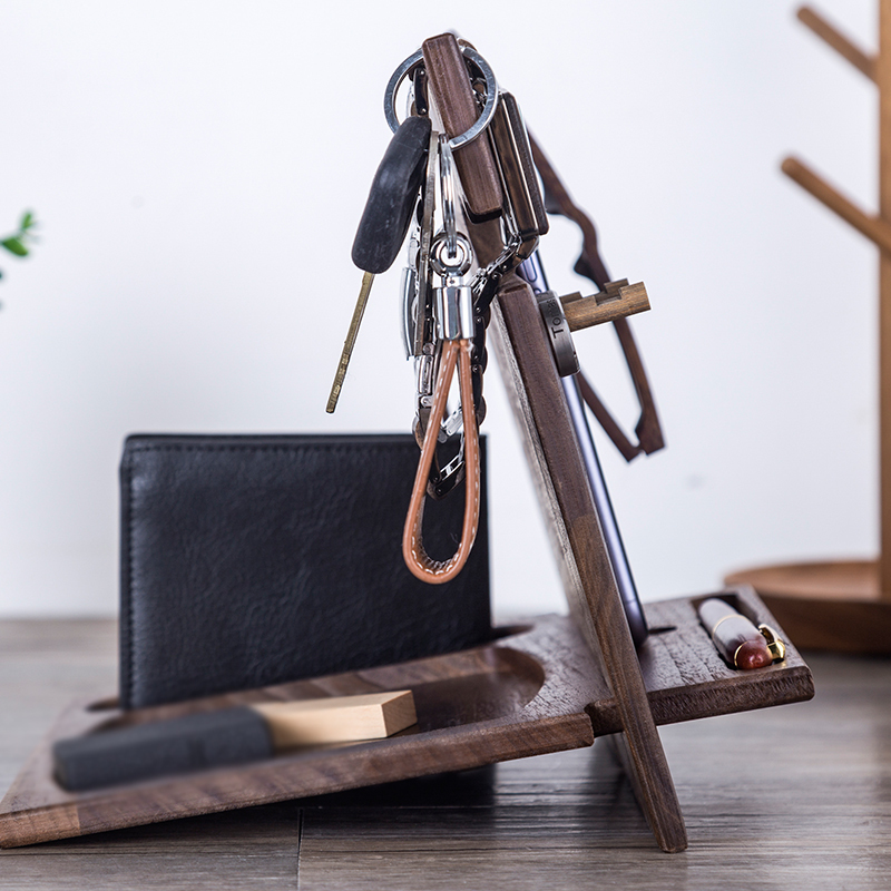 3.This stand is a good solution to keep all your daily items organized and easy to find. It was designed to keep the smartphone or tablet, keys, watch, glasses, wallet. Thanks to its design, everything will be well organized and at handy.