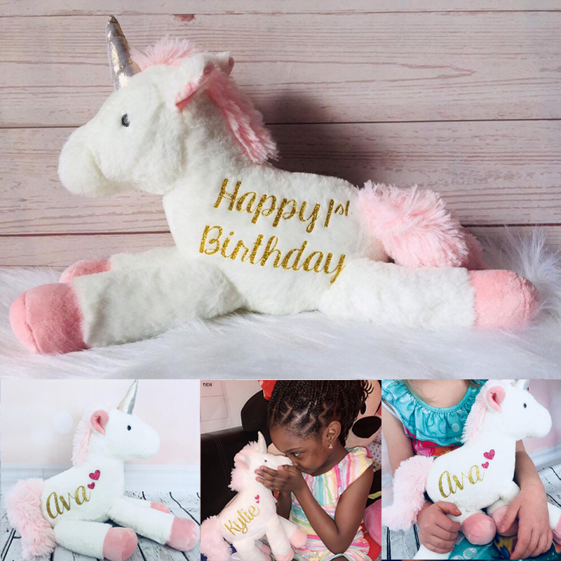 Personalized Unicorn Stuffed Animal for Baby Girl, Unicorn Plush, Flower Girl