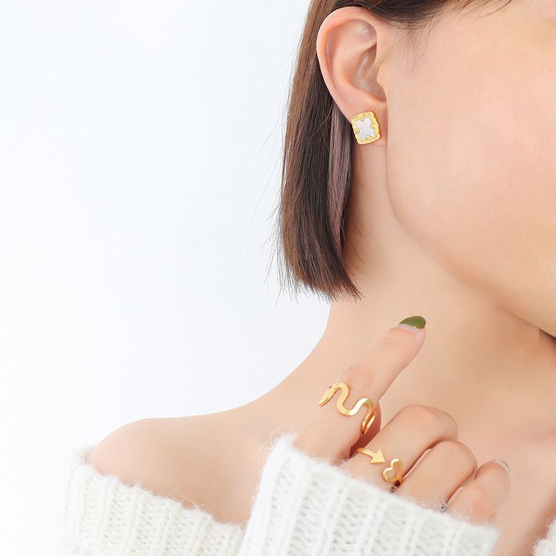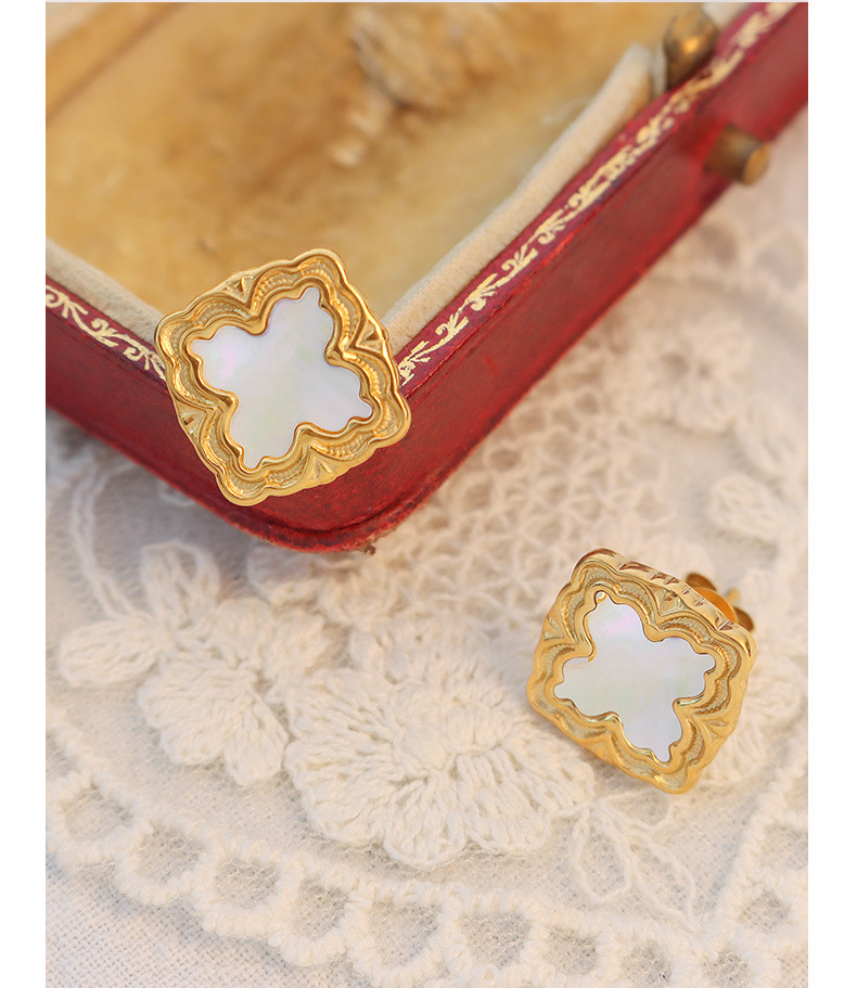 White seashell with flower texture provides a vintage taste, definitely a daily worn piece. It goes well with our Geometric Series Rings too!